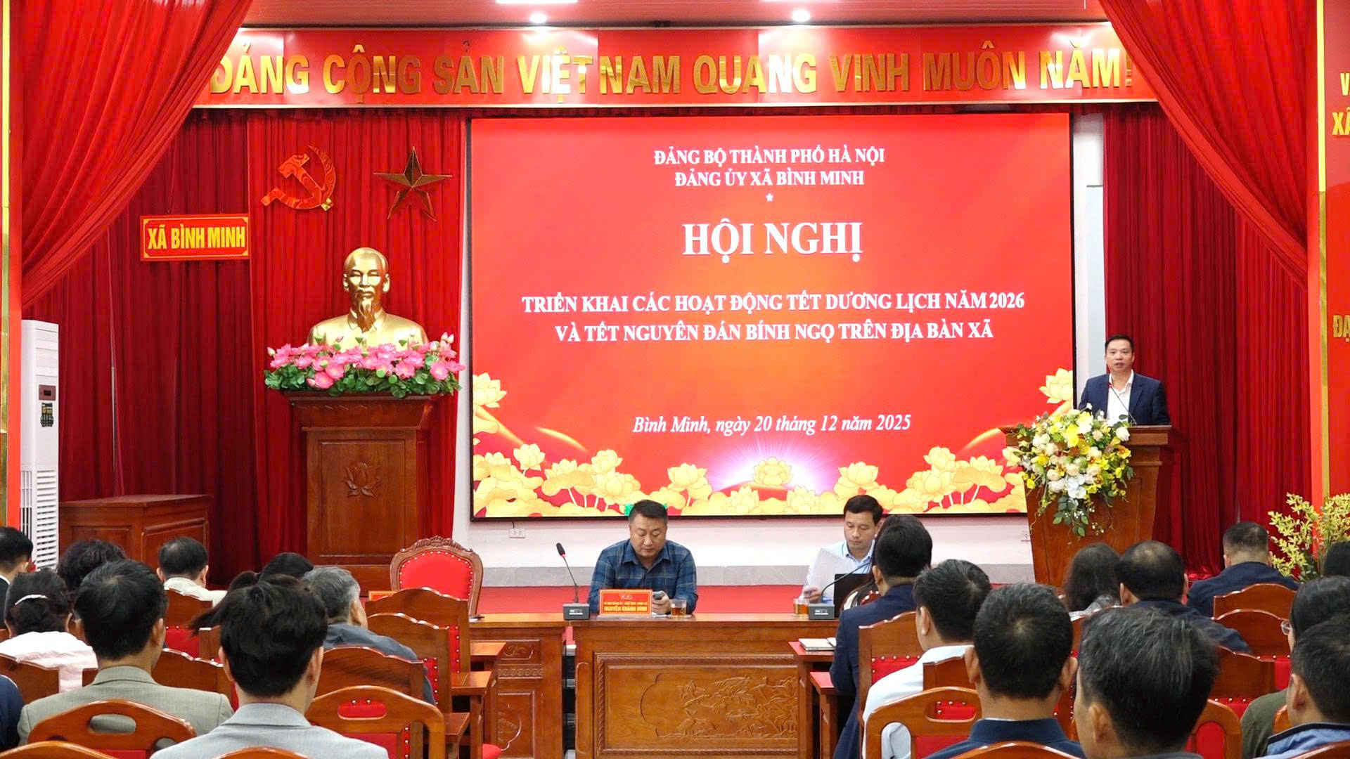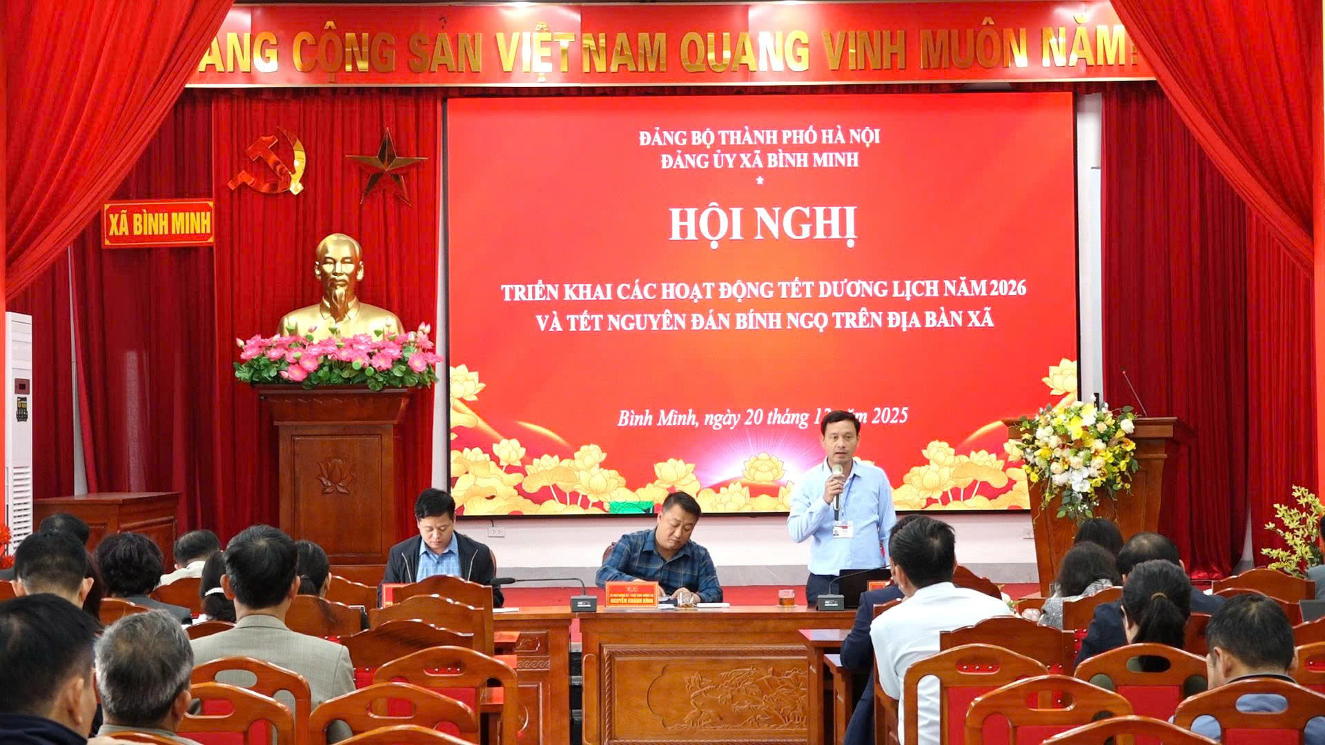 Nhằm chuẩn bị tốt các điều kiện phục vụ Nhân dân đón Tết Dương lịch năm 2026 và Tết Nguyên đán Bính Ngọ vui tươi, an toàn, tiết kiệm, Sáng 20/12, UBND xã đã tổ chức Hội nghị triển khai kế hoạch tổ chức các hoạt động Tết Dương lịch 2026 ; Tết Nguyên đán Bính Ngọ và triển khai nhiệm vụ công tác bầu cử đại biểu Quốc hội và HĐND các cấp nhiệm kỳ 2026 – 2031