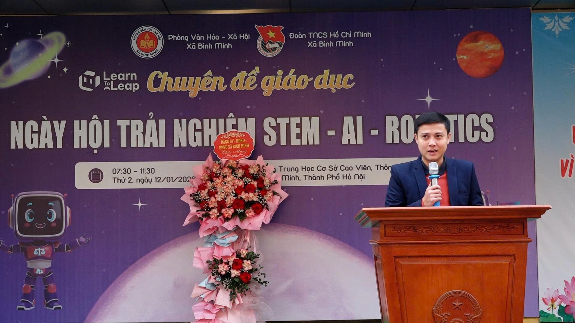 Phát biểu tại chương trình, đồng chí Nguyễn Đăng Việt – Phó Bí thư Đảng ủy, Chủ tịch UBND xã Bình Minh nhấn mạnh: "trong bối cảnh xã mới được thành lập với quy mô dân số lớn, phạm vi quản lý rộng, giáo dục - đào tạo, đặc biệt là giáo dục khoa học - công nghệ và kỹ năng số, không còn là lĩnh vực riêng của ngành giáo dục mà đã trở thành yếu tố quyết định năng lực phát triển bền vững của địa phương". Đồng chí cho rằng, đổi mới sáng tạo, trí tuệ nhân tạo và công nghệ Robotics đang mở ra những không gian phát triển mới, biến nhiều điều tưởng chừng như không thể trở thành hiện thực, đòi hỏi giáo dục phải đi trước một bước trong việc trang bị tư duy, kỹ năng cho thế hệ trẻ. Ngày hội STEM - AI - Robotics không chỉ là một hoạt động trải nghiệm, mà còn là bước thử nghiệm quan trọng trong quá trình hình thành tư duy công dân số ngay từ cơ sở.