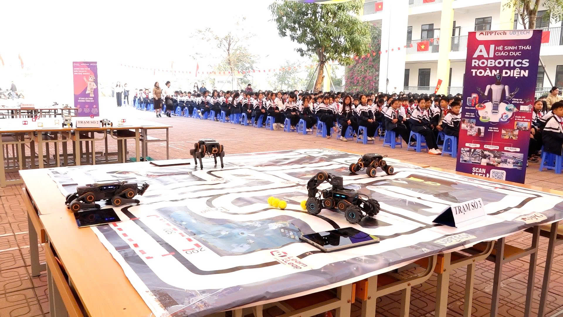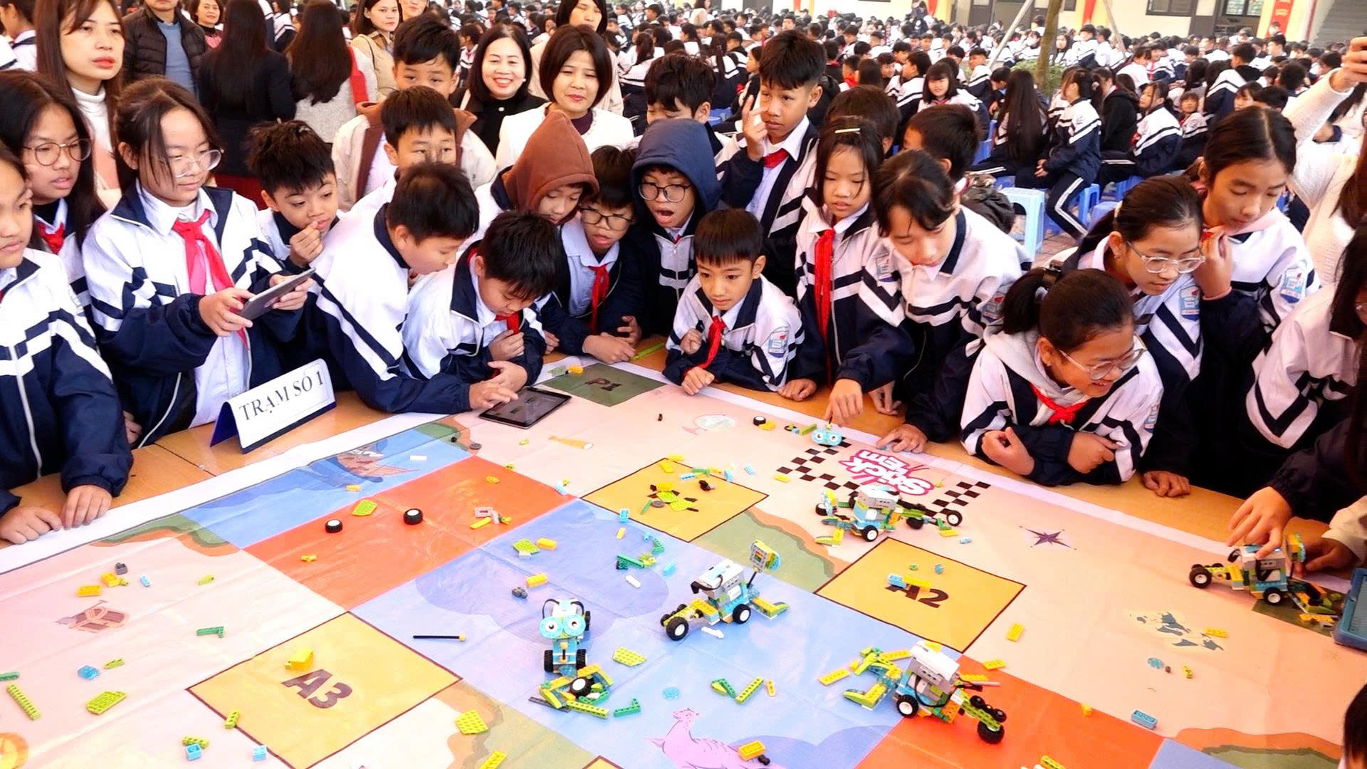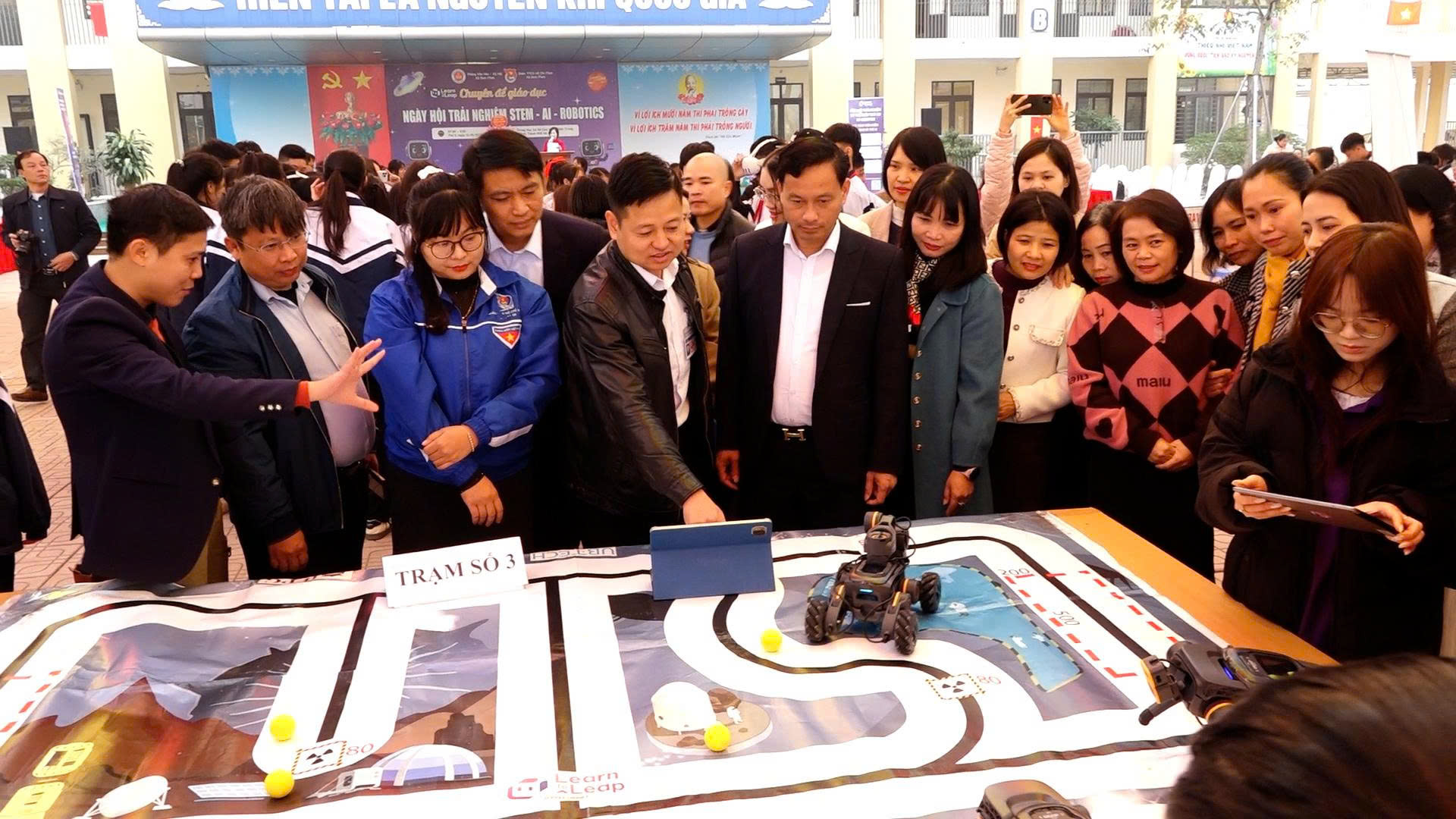 Điểm nổi bật của Ngày hội là việc tổ chức cho toàn bộ học sinh tham gia trải nghiệm trực tiếp tại 04 trạm công nghệ, bao gồm: Trạm STEM sáng tạo với các hoạt động lắp ráp, rèn luyện tư duy kỹ thuật; Trạm Robotics giúp học sinh làm quen với lập trình và điều khiển robot; Trạm trải nghiệm trí tuệ nhân tạo (AI) với các ứng dụng nhận diện, tương tác thông minh; Trạm ứng dụng công nghệ số gắn với thực tiễn học tập và đời sống.