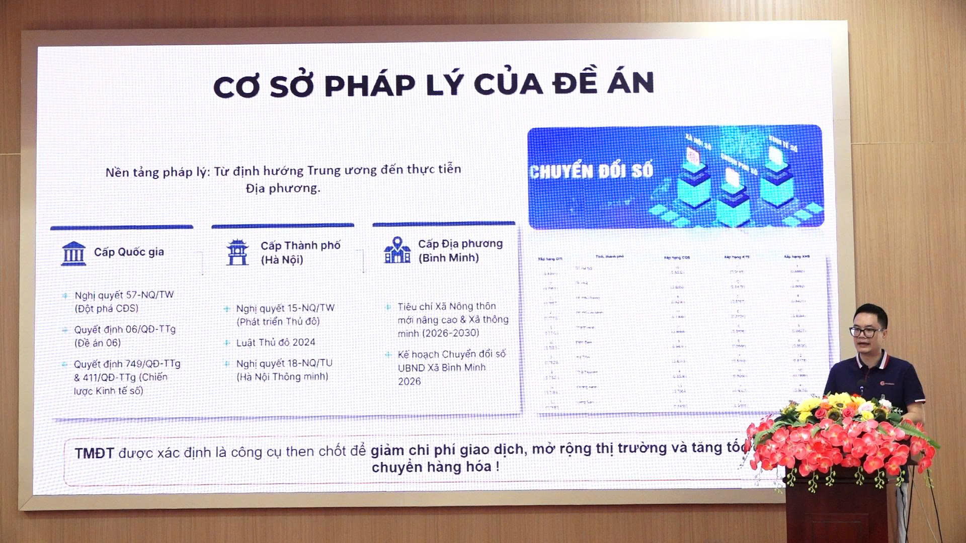 Phát biểu tại buổi làm việc, đồng chí Nguyễn Đăng Việt – Chủ tịch UBND xã Bình Minh nhấn mạnh rằng: việc nghiên cứu xây dựng Sàn thương mại điện tử địa phương không chỉ mang ý nghĩa mở rộng kênh tiêu thụ hàng hóa cho doanh nghiệp và hộ kinh doanh, mà còn góp phần từng bước xây dựng hạ tầng kinh tế số của địa phương, hình thành mô hình quản trị và phát triển kinh tế dựa trên dữ liệu và nền tảng công nghệ số. Đây được xem là một trong những giải pháp quan trọng nhằm thúc đẩy chuyển đổi mô hình tăng trưởng kinh tế của địa phương, phù hợp với định hướng chuyển đổi số quốc gia và chiến lược phát triển kinh tế số của Thủ đô Hà Nội.