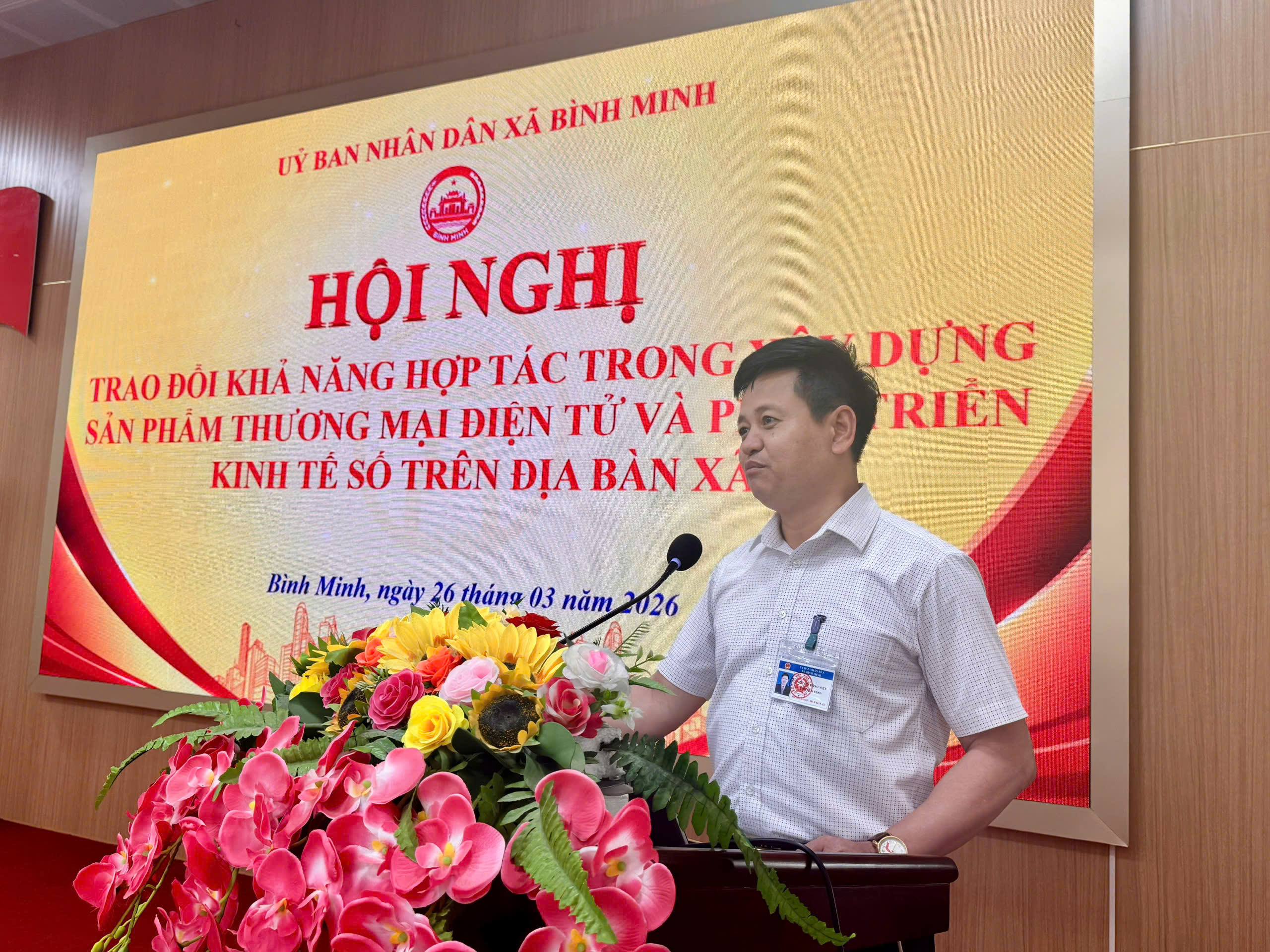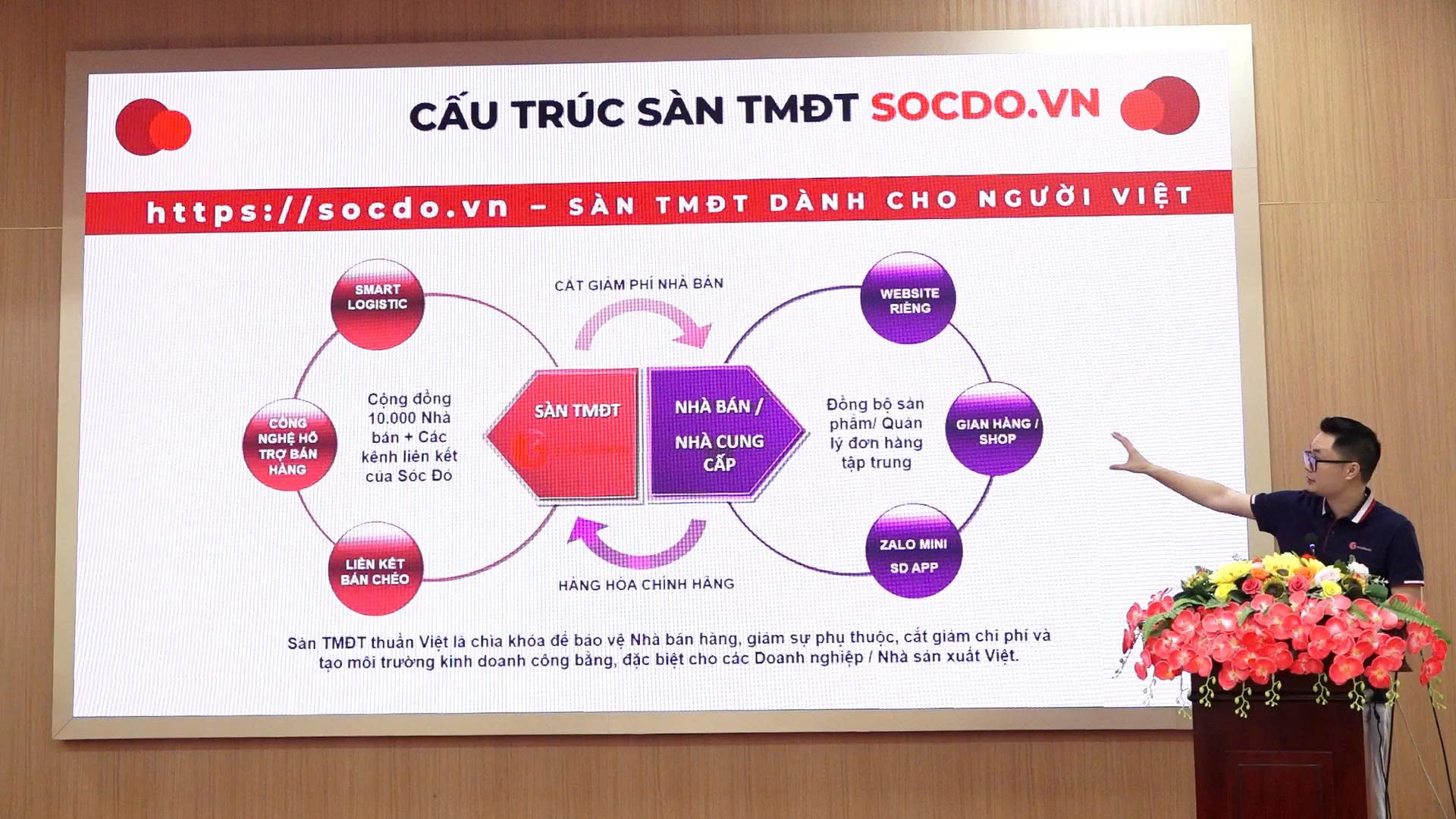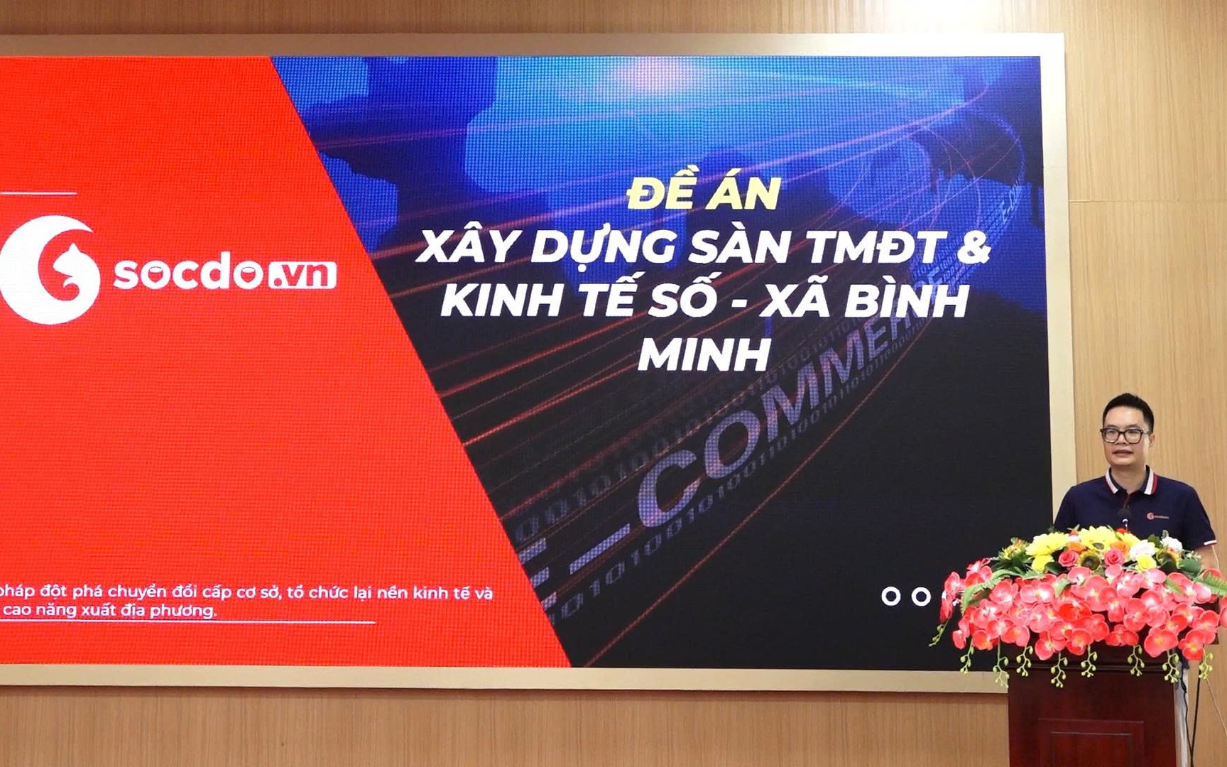 Tại buổi làm việc, ông Đào Hữu Thủy – Tổng Giám đốc Công ty Cổ phần Sóc Đỏ đã giới thiệu tổng quan về nền tảng Sàn thương mại điện tử Socdo.vn, đồng thời trình bày đề án xây dựng Sàn thương mại điện tử và phát triển kinh tế số xã Bình Minh giai đoạn 2026 – 2030. Theo đó, mô hình đề xuất hướng tới việc hình thành nền tảng thương mại số cấp cơ sở, đóng vai trò là cầu nối giữa các hộ kinh doanh, doanh nghiệp địa phương với thị trường tiêu dùng trên môi trường số; qua đó mở rộng kênh phân phối, nâng cao năng lực cạnh tranh và thúc đẩy chuyển đổi từ mô hình kinh doanh truyền thống sang kinh doanh trên nền tảng số.