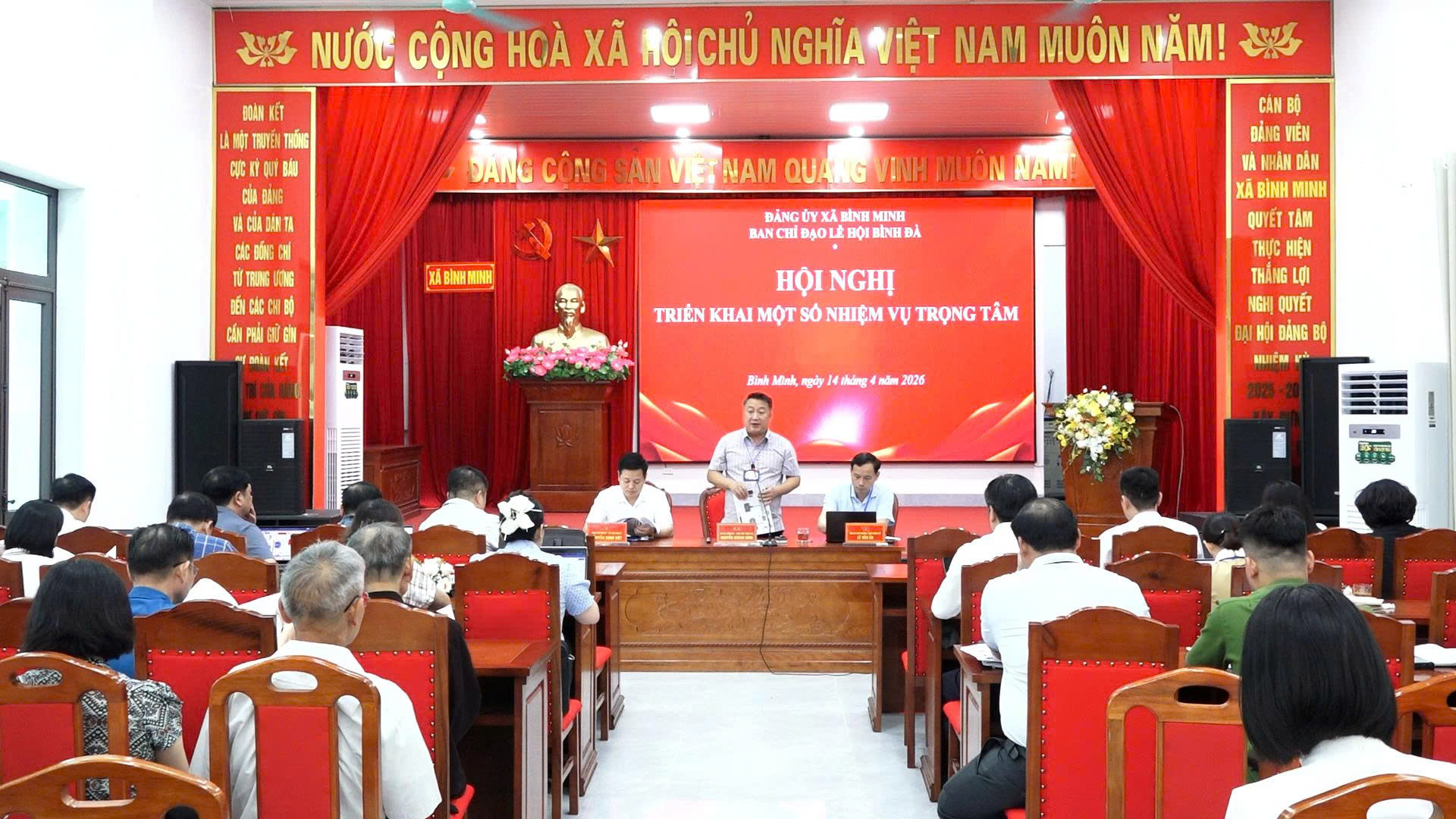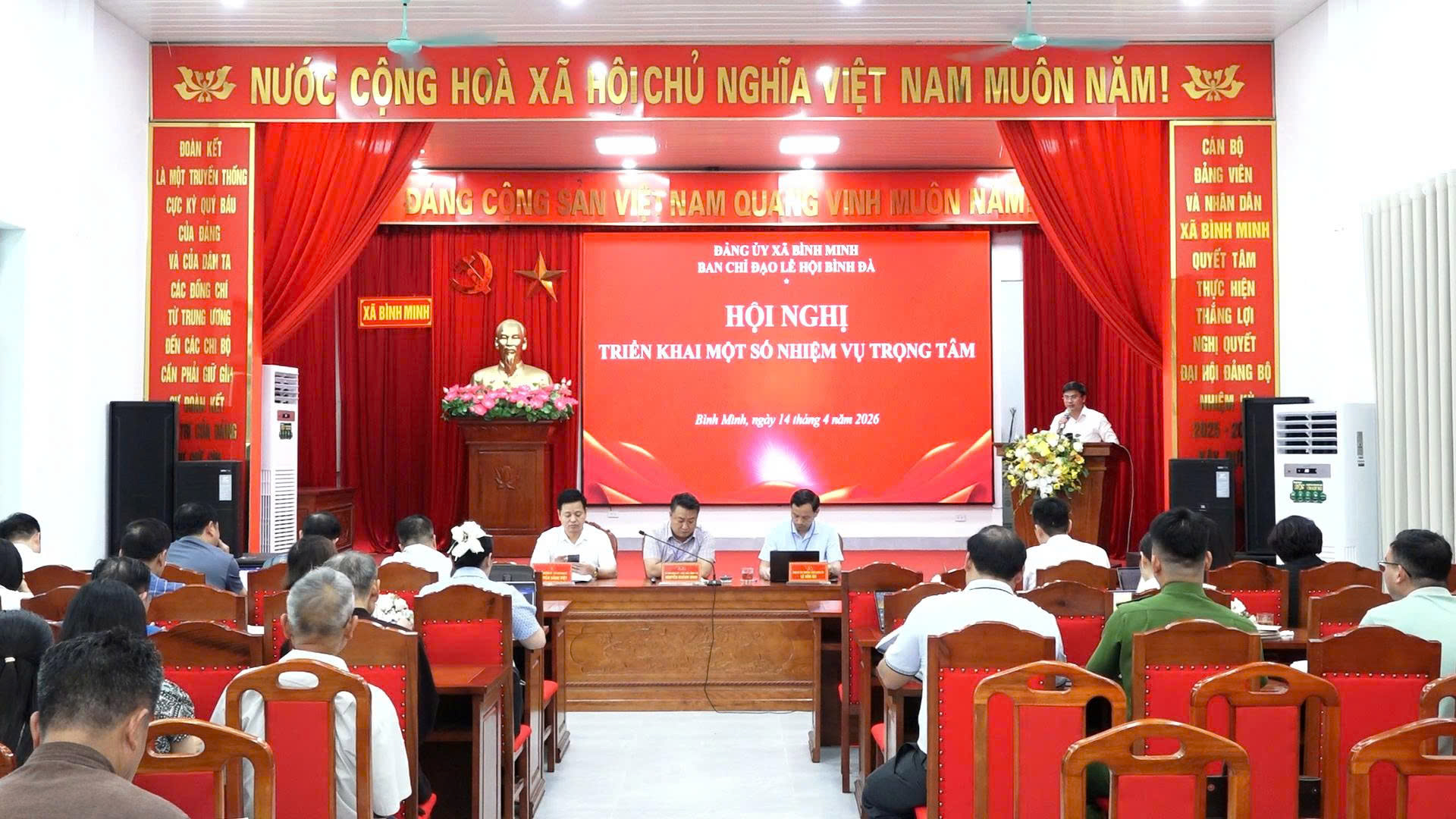 Chiều ngày 14/4/2026, tại Hội trường Đảng ủy xã Bình Minh, Ban Chỉ đạo tổ chức Lễ hội Bình Đà Xuân Bính Ngọ năm 2026 đã tổ chức Hội nghị nghe báo cáo tiến độ và triển khai các nhiệm vụ trọng tâm phục vụ công tác tổ chức lễ hội – sự kiện văn hóa tiêu biểu mang tầm vóc Di sản văn hóa phi vật thể quốc gia.