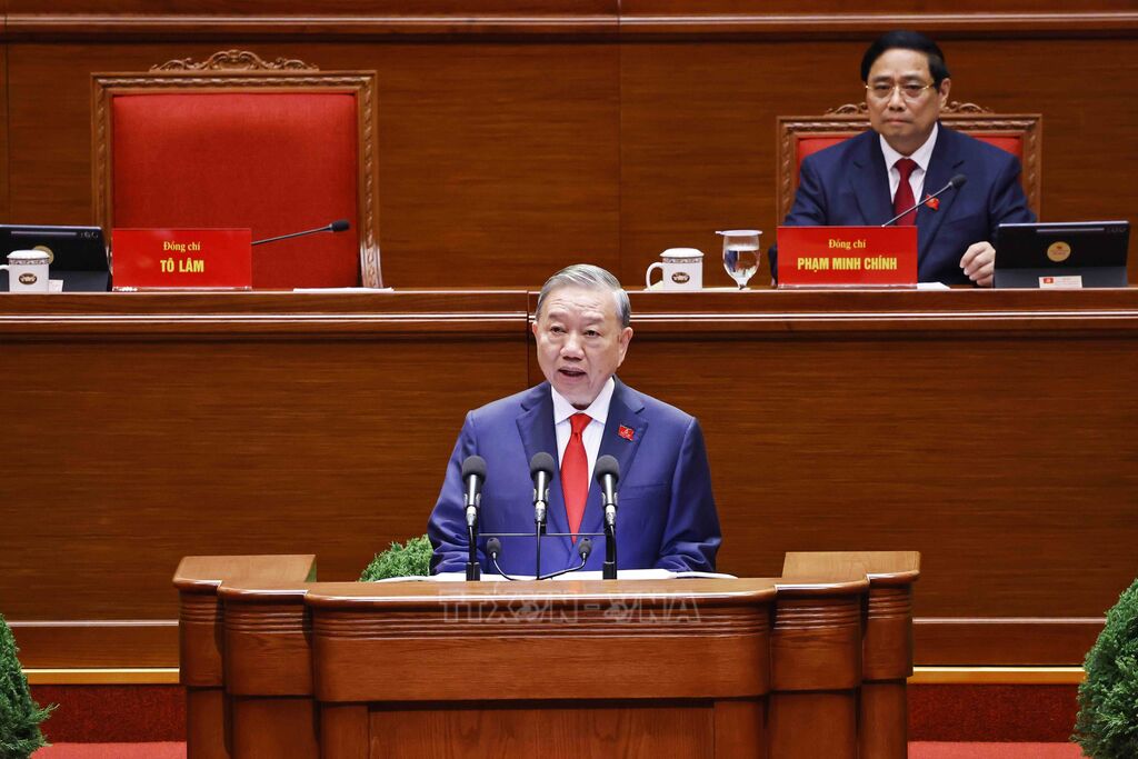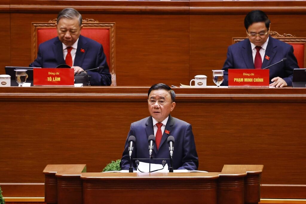 Tổng Bí thư Tô Lâm trình bày Báo cáo của Ban Chấp hành Trung ương Đảng khóa XIII về các văn kiện trình Đại hội XIV của Đảng.