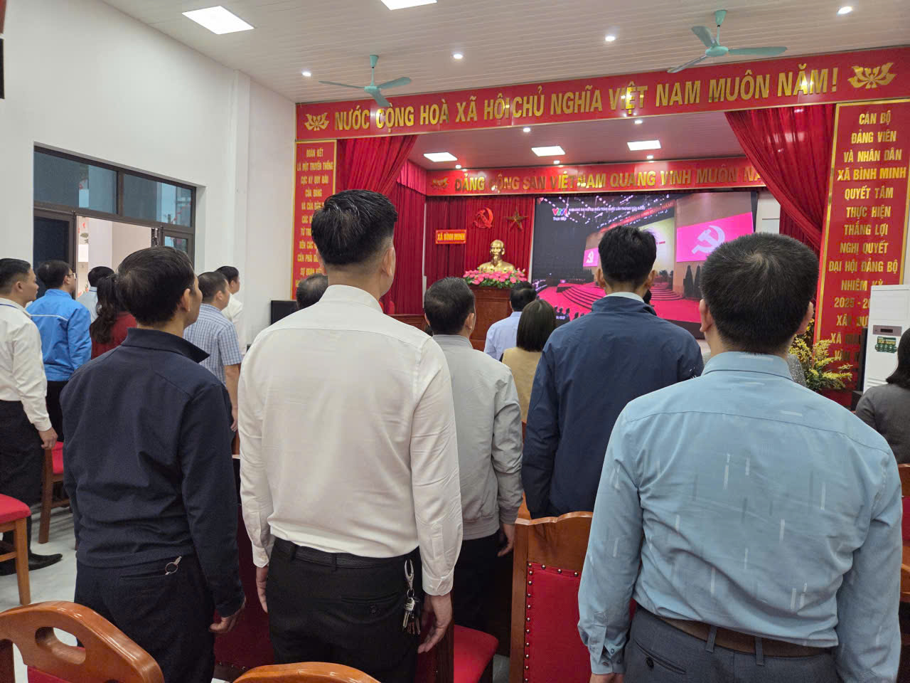 Tham dự phiên khai mạc Đại hội XIV của Đảng tại điểm cầu xã Bình Minh có đồng chí Nguyễn Khánh Bình, Bí thư Đảng uỷ, Chủ tịch HĐND xã; đồng chí Lê Văn Ân, Phó Bí thư thường trực Đảng uỷ xã, Ban Thường vụ, Ban Chấp hành Đảng bộ; Lãnh đạo các ban, ngành, đoàn thể và toàn thể cán bộ, công chức thuộc các cơ quan Đảng uỷ, HĐND, UBND, UBMTTQ xã