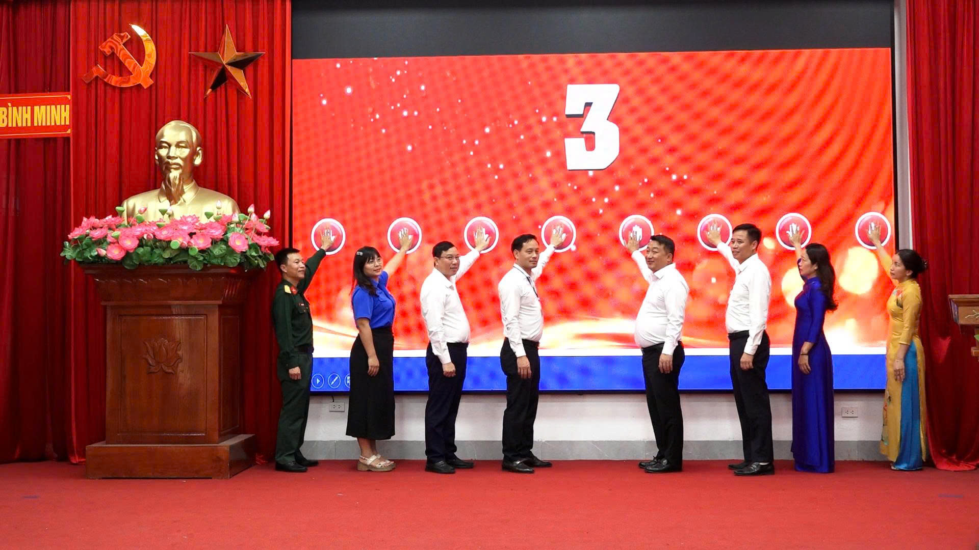 Lãnh đạo xã Bình Minh thực hiện nghi lễ phát động cuộc thi