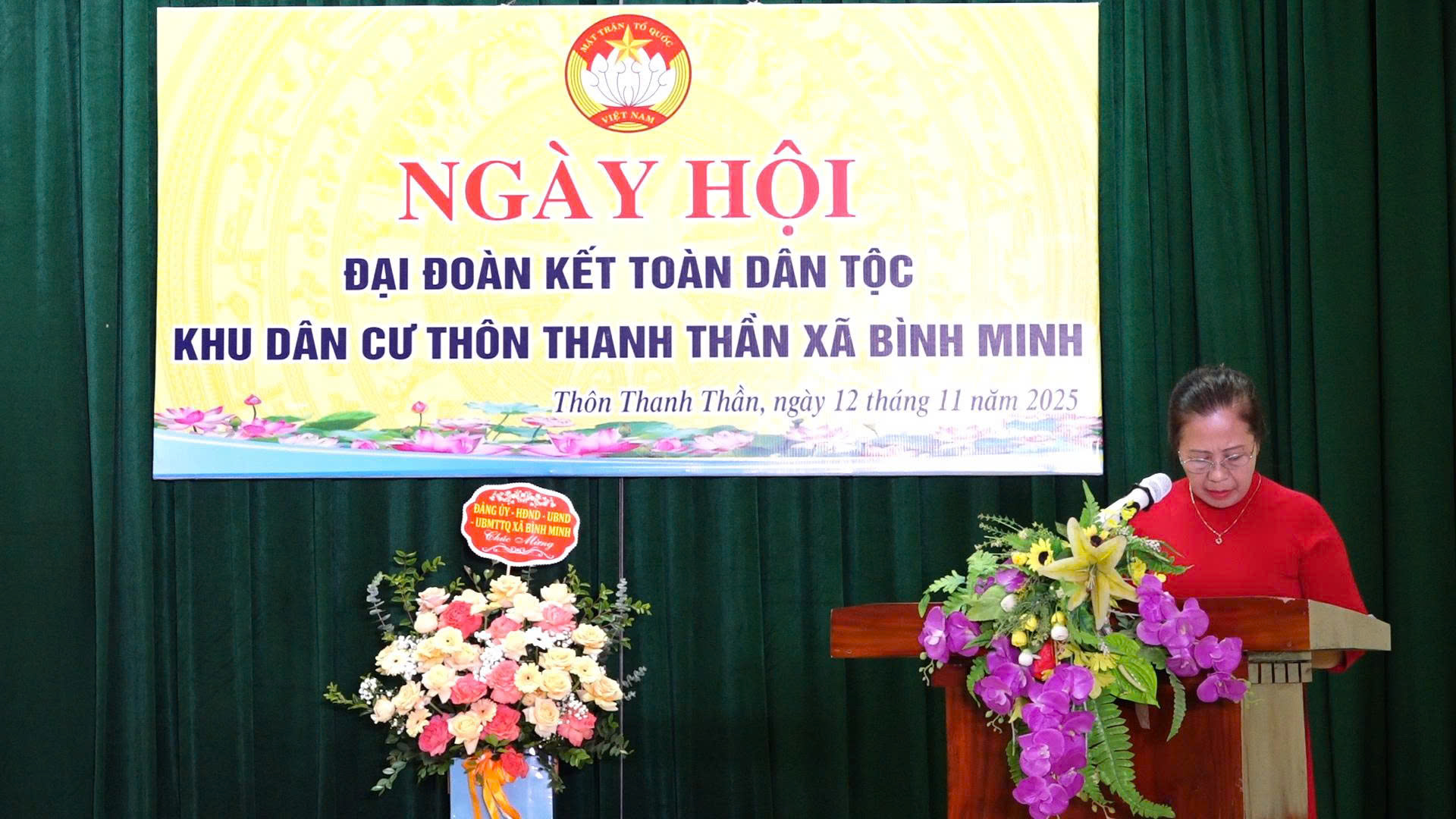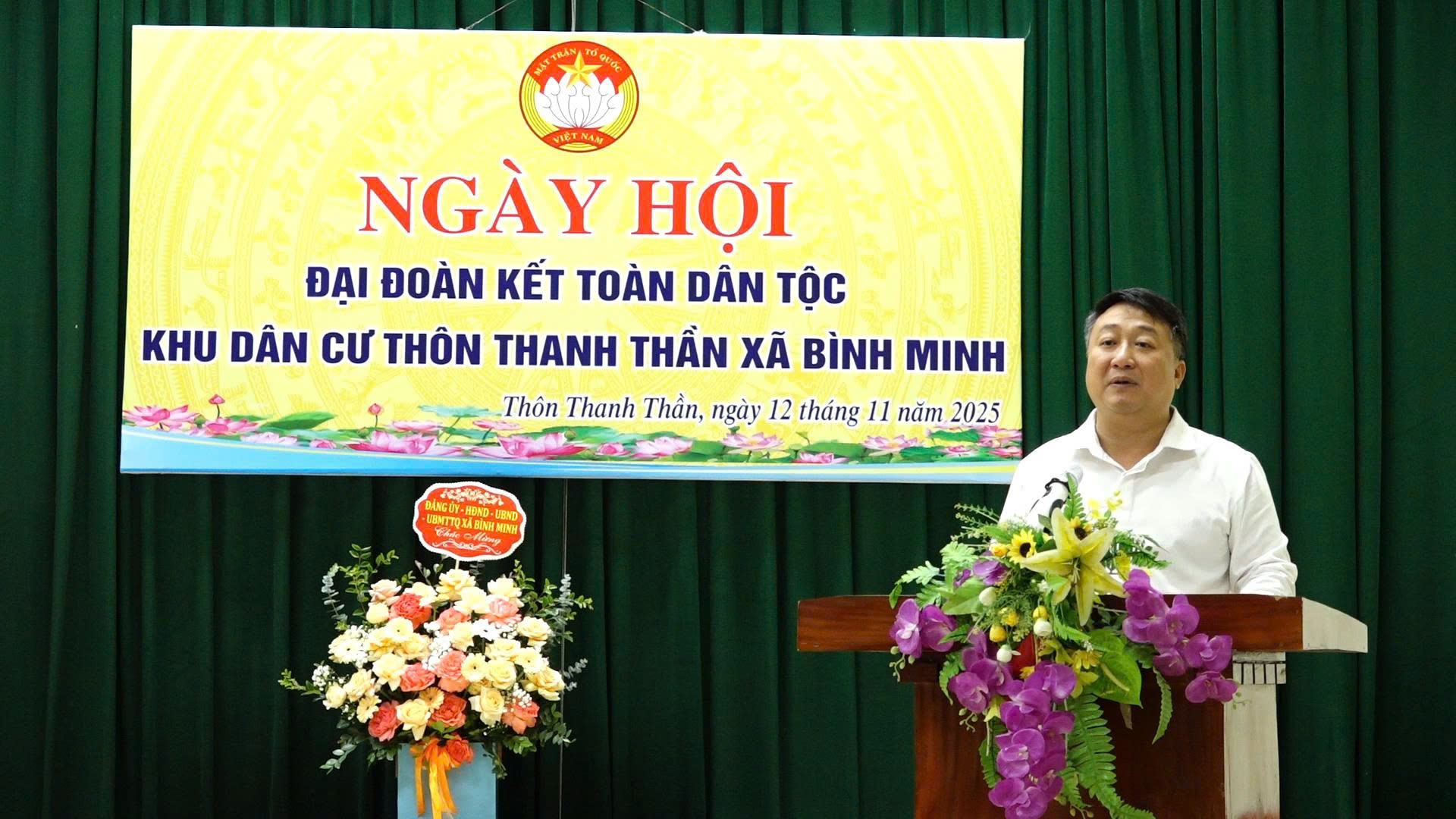Phát biểu chỉ đạo tại Ngày hội, đồng chí Bí thư Đảng ủy, Chủ tịch HĐND xã Nguyễn Khánh Bình thay mặt lãnh đạo xã đã biểu dương, ghi nhận và chúc mừng những thành tích xuất sắc mà cán bộ, đảng viên và Nhân dân thôn Thanh Thần đạt được trong năm qua. Đồng chí khẳng định những kết quả này là minh chứng sinh động cho sức mạnh của khối Đại đoàn kết toàn dân tộc, thể hiện rõ vai trò và niềm tin của Nhân dân đối với cấp ủy, chính quyền xã.