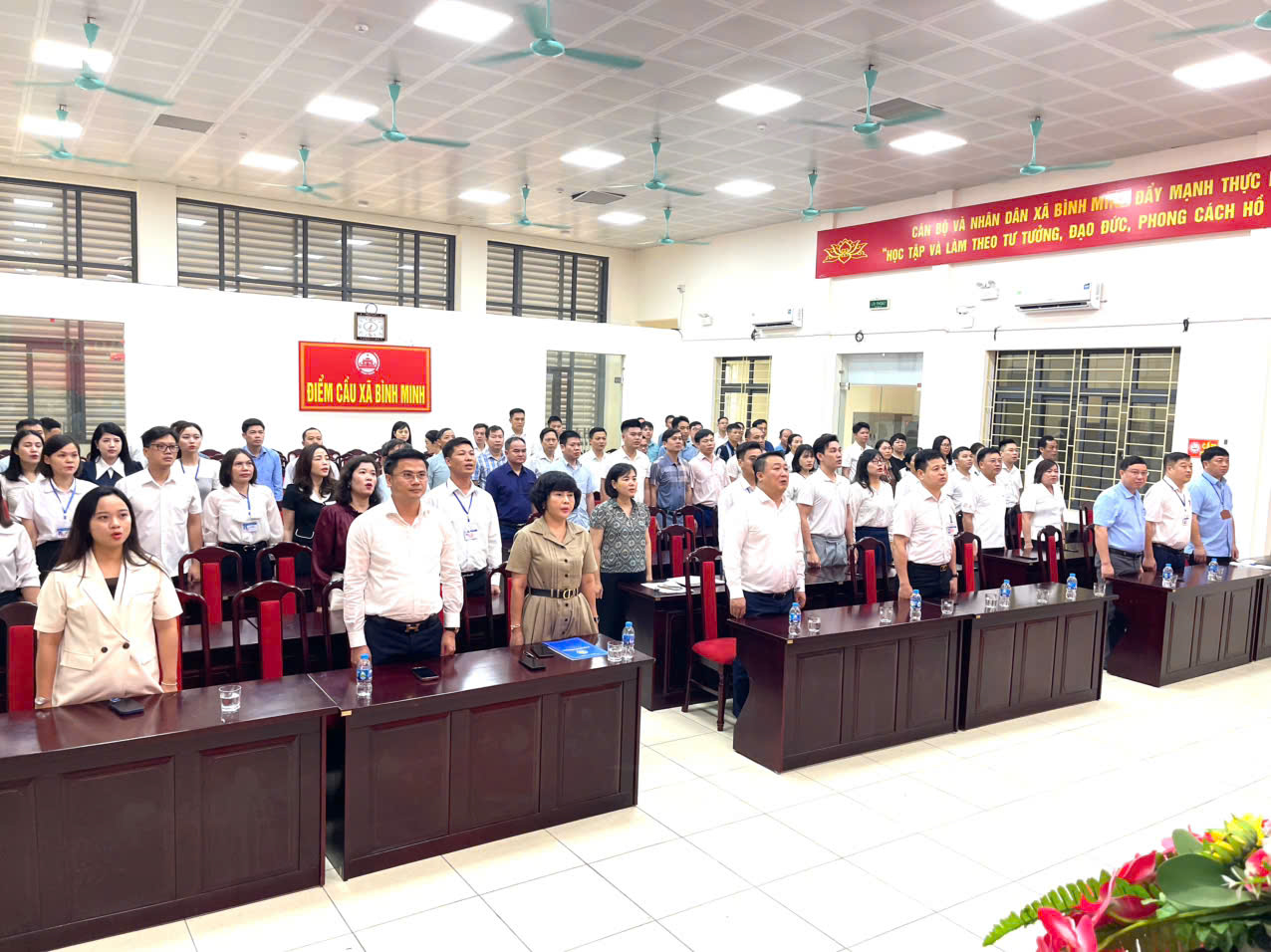 Dự và chỉ đạo buổi lễ có đồng chí Nguyễn Khánh Bình– Bí thư Đảng ủy, Chủ tịch HĐND xã; đồng chí Nguyễn Đăng Việt – Phó Bí thư Đảng ủy, Chủ tịch UBND xã; cùng các đồng chí trong Ban Thường vụ, lãnh đạo các ban, ngành, đoàn thể và toàn thể cán bộ, công chức, viên chức, người lao động thuộc các cơ quan Đảng ủy, HĐND, UBND, UBMTTQ xã.