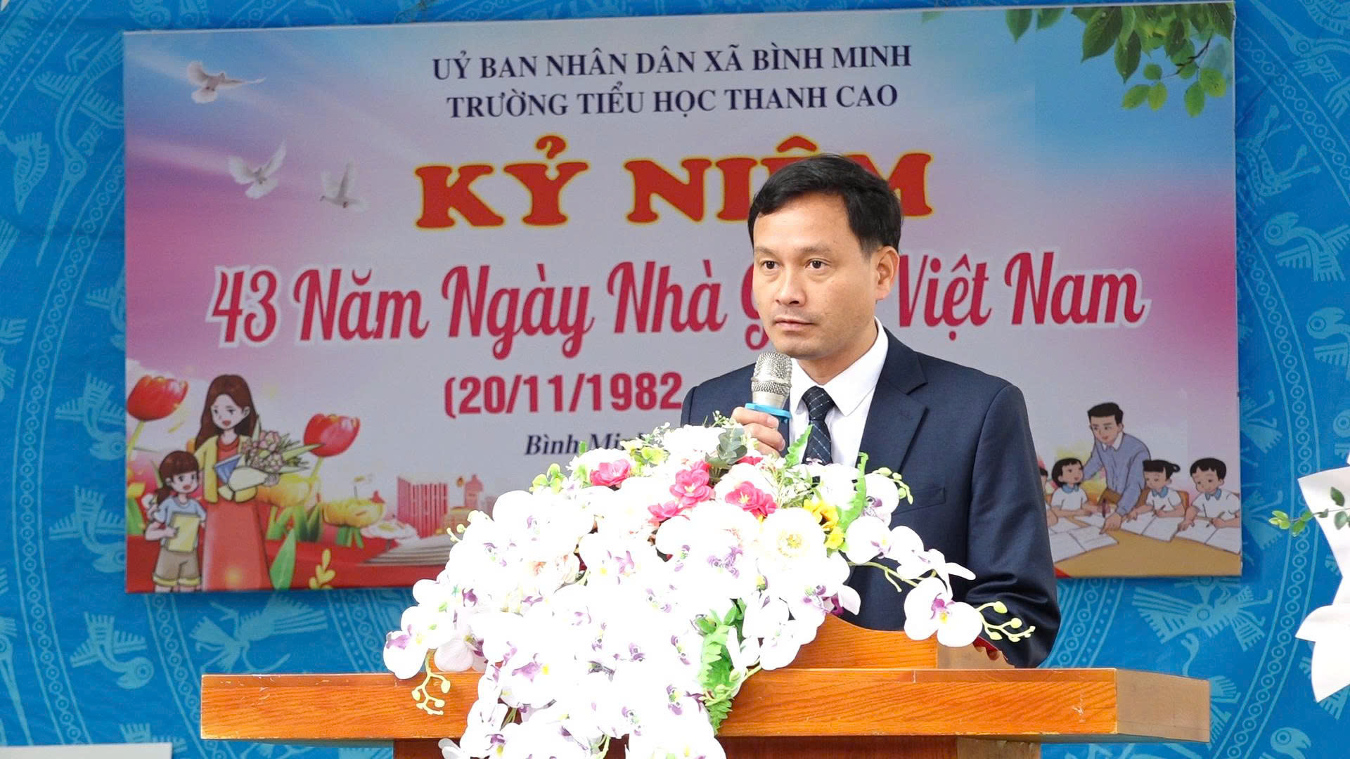 Phát biểu tại lễ kỷ niệm, Phó Bí thư thường trực Đảng uỷ xã Lê Văn Ân biểu dương và chúc mừng thành tích xuất sắc của thầy và trò nhà trường. Đồng chí nhấn mạnh những phần thưởng cao quý nhà trường đã đạt được là niềm vinh dự và cũng là động lực để nhà trường tiếp tục phấn đấu đạt được nhiều thành tích cao hơn.