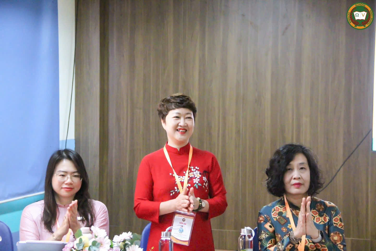 Ảnh: Nhà giáo Vĩnh Hà ( đứng) - HT trường TH&THCS Victoria Thăng Long
