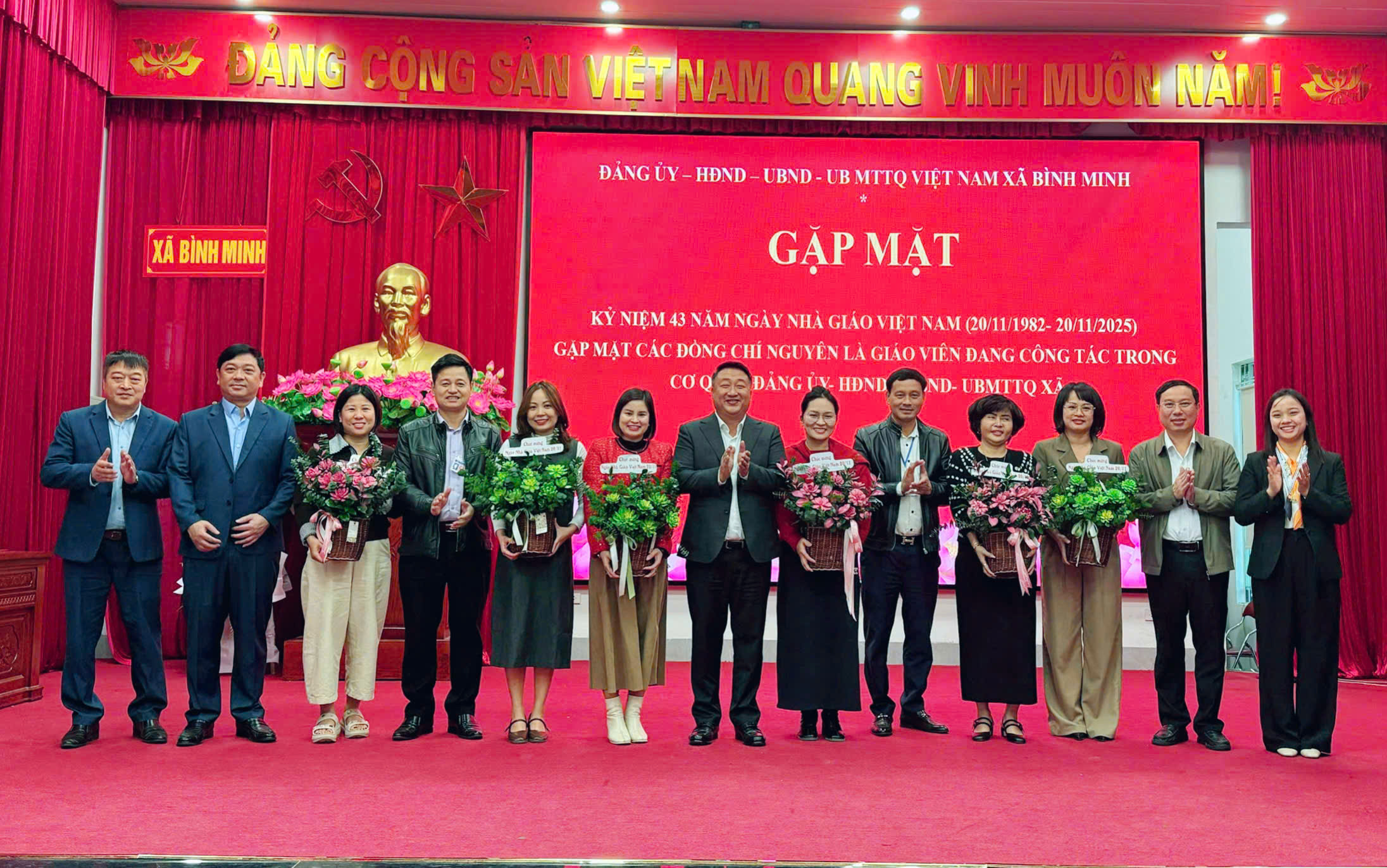 Những bó hoa được trao đi như lời cảm ơn chân thành đối với những đóng góp lặng thầm nhưng bền bỉ của 18 đồng chí cán bộ từng làm giáo viên, những người tiếp tục mang tinh thần nhà giáo vào công việc mới. Sự ghi nhận ấy cũng là động lực để đội ngũ cán bộ xã Bình Minh tiếp tục nỗ lực, cống hiến, góp phần xây dựng địa phương ngày càng văn minh, hiện đại, giàu bản sắc và nhân văn.