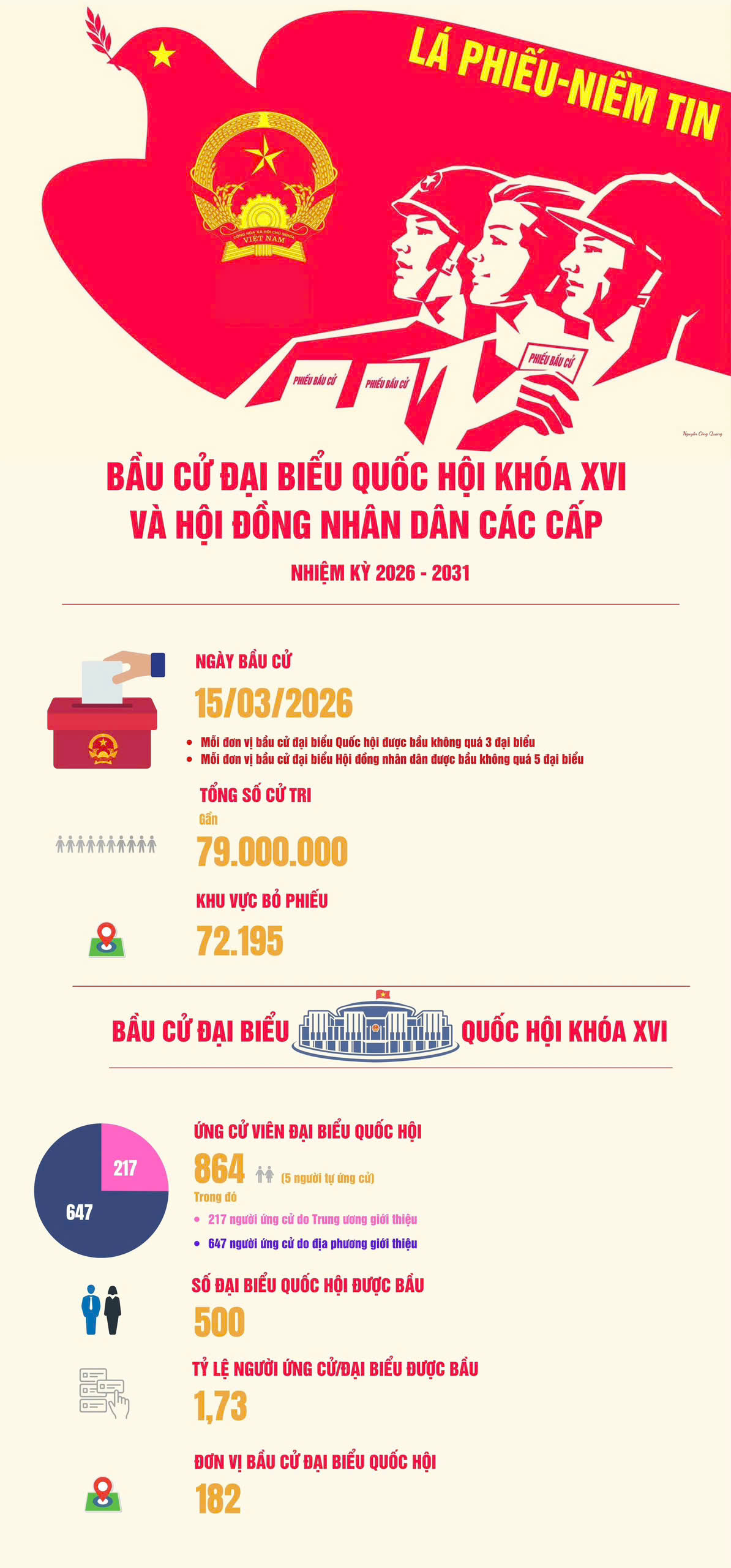 Trong dòng chảy đó, cuộc bầu cử đại biểu Quốc hội khóa XVI và đại biểu Hội đồng nhân dân các cấp nhiệm kỳ 2026 – 2031, diễn ra vào ngày 15 tháng 3 năm 2026, đã tiếp tục khẳng định và phát huy truyền thống dân chủ của đất nước.