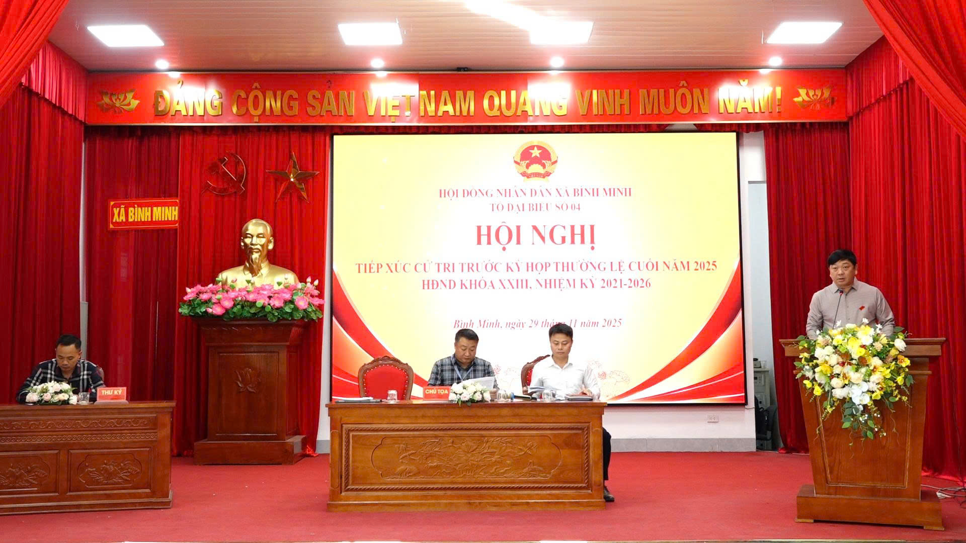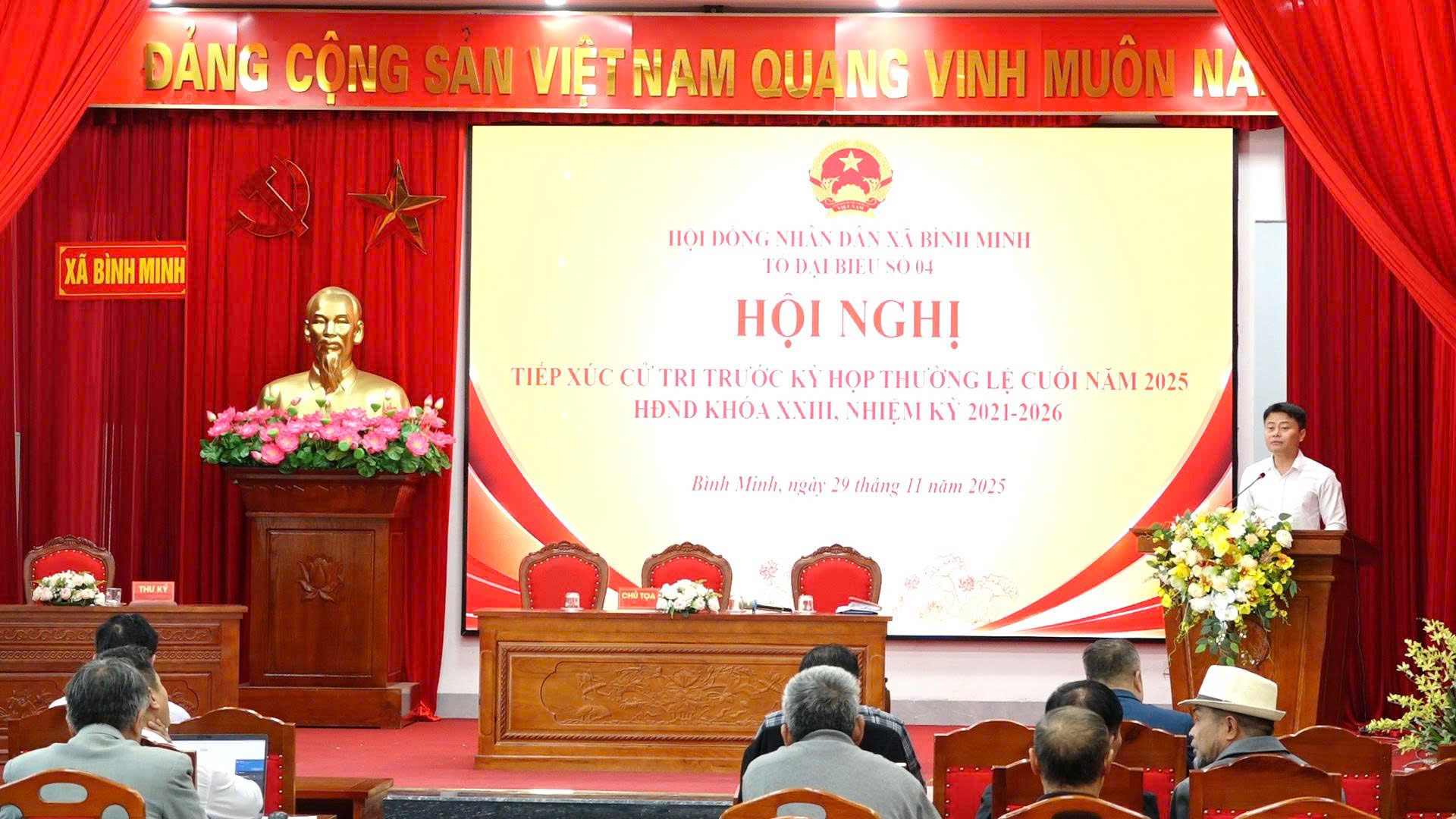 Chiều ngày 29/11, Tổ đại biểu số 04 HĐND xã Bình Minh khóa XXIII, nhiệm kỳ 2021–2026 đã tổ chức hội nghị tiếp xúc cử tri trước kỳ họp thường lệ cuối năm 2025.