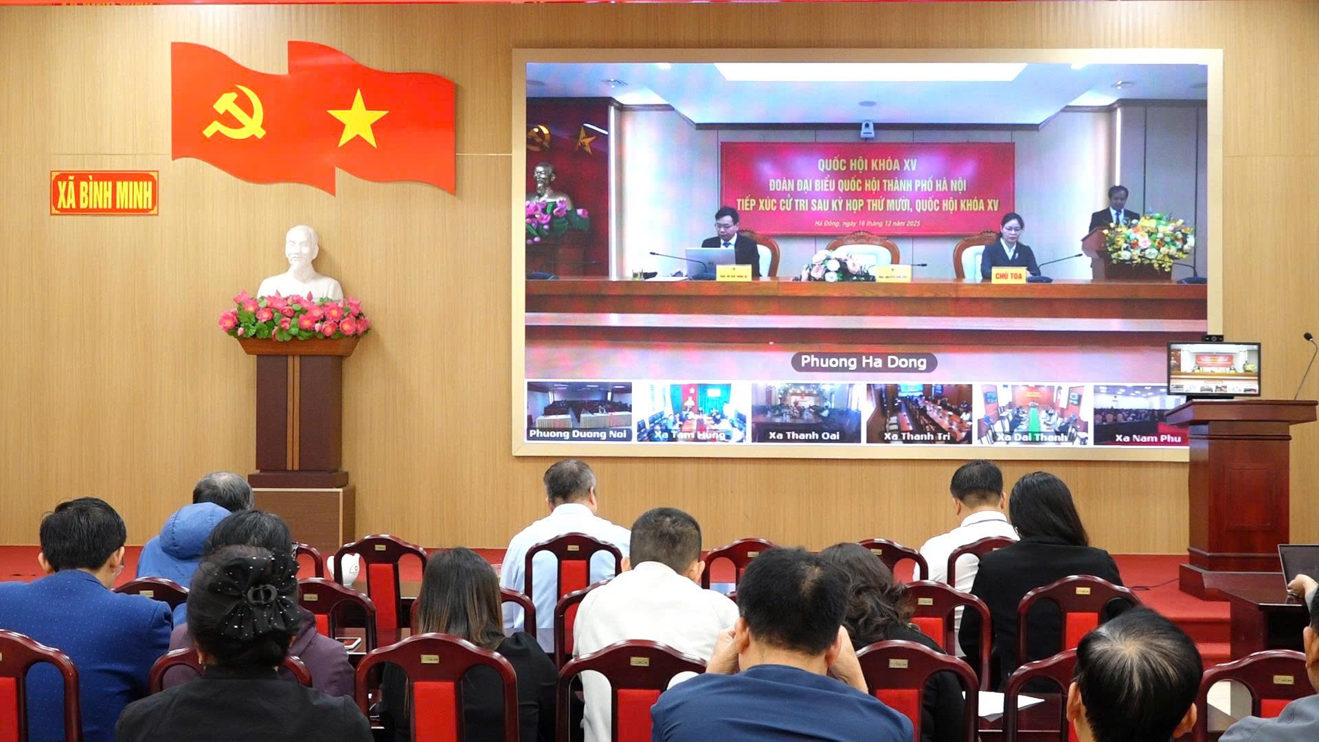 Tại điểm cầu xã Bình Minh, tham dự hội nghị có đồng chí Nguyễn Khánh Bình, Bí thư Đảng uỷ, Chủ tịch HĐND xã; các đồng chí UVBTV Đảng uỷ; Trưởng, phó các Ban HĐND; Lãnh đạo các phòng , ban, chuyên môn UBND xã; Ban Thường trực UBMTTQ xã; Tổ trưởng, Tổ phó các tổ đại biểu HĐND xã; thành viên các Ban HĐND và các cử tri đại diện các đoàn thể chính trị xã.