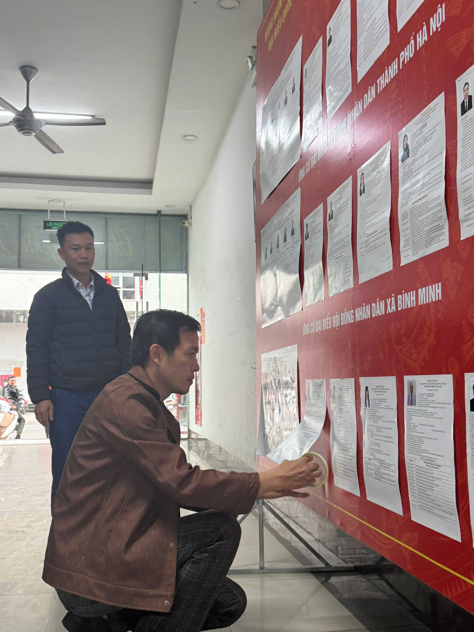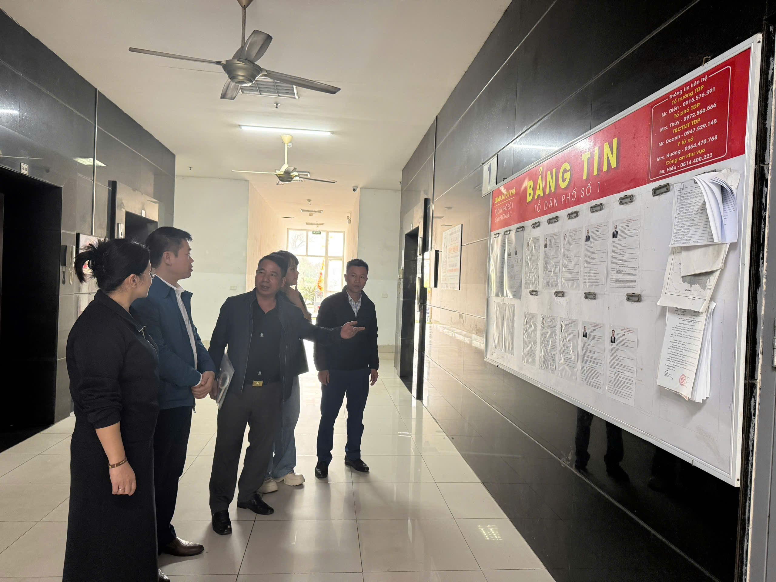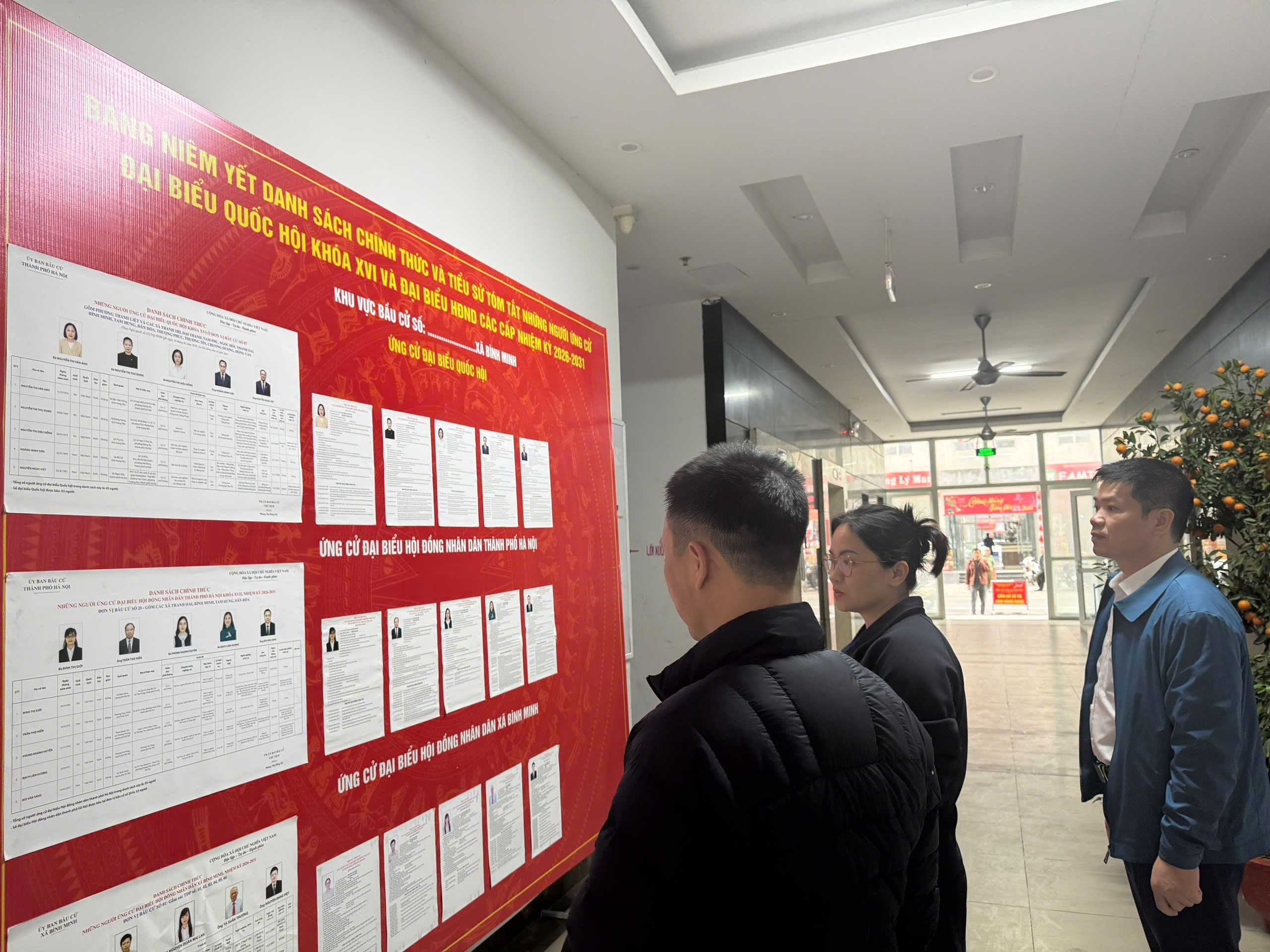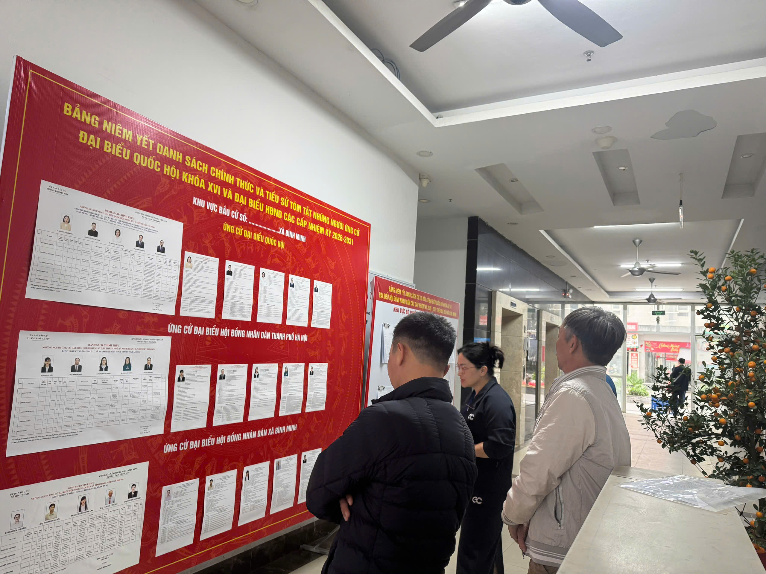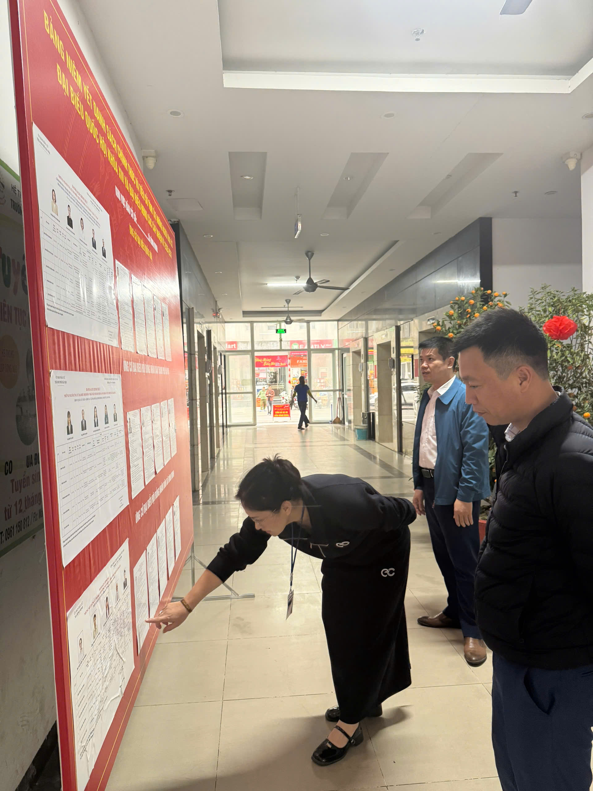 Để tạo thuận lợi cho cử tri, các tổ bầu cử đã bố trí điểm niêm yết danh sách cử tri tại sảnh tầng 1 của các tòa nhà, nơi cư dân thường xuyên qua lại, giúp người dân dễ dàng theo dõi và kiểm tra thông tin.