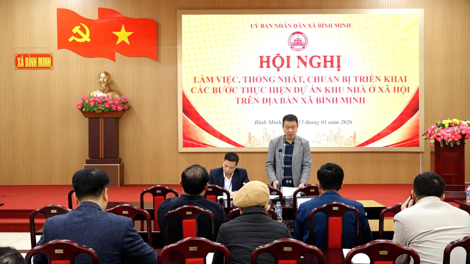 Ngay sau khi có các quyết định của thành phố, Sáng ngày 13/1 UBND xã Bình Minh đã phối hợp với các chủ đầu tư là Công ty Cổ phần Đô thị Nam Sơn INVEST, Công ty Cổ phần Đầu tư Phát triển Nam Hà Nội, Công ty Cổ phần Đô thị Bình Minh INVEST, Công ty cổ phần Đầu tư phát triển Nam Anh Invest tổ chức hội nghị làm việc, thống nhất, chuẩn bị triển khai các bước thực hiện dự án khu nhà ở xã hội trên địa bàn. Đồng chí Vũ Mạnh Tuấn, UVBTV Đảng uỷ, Phó Chủ tịch UBND xã dự và chủ trì hội nghị.