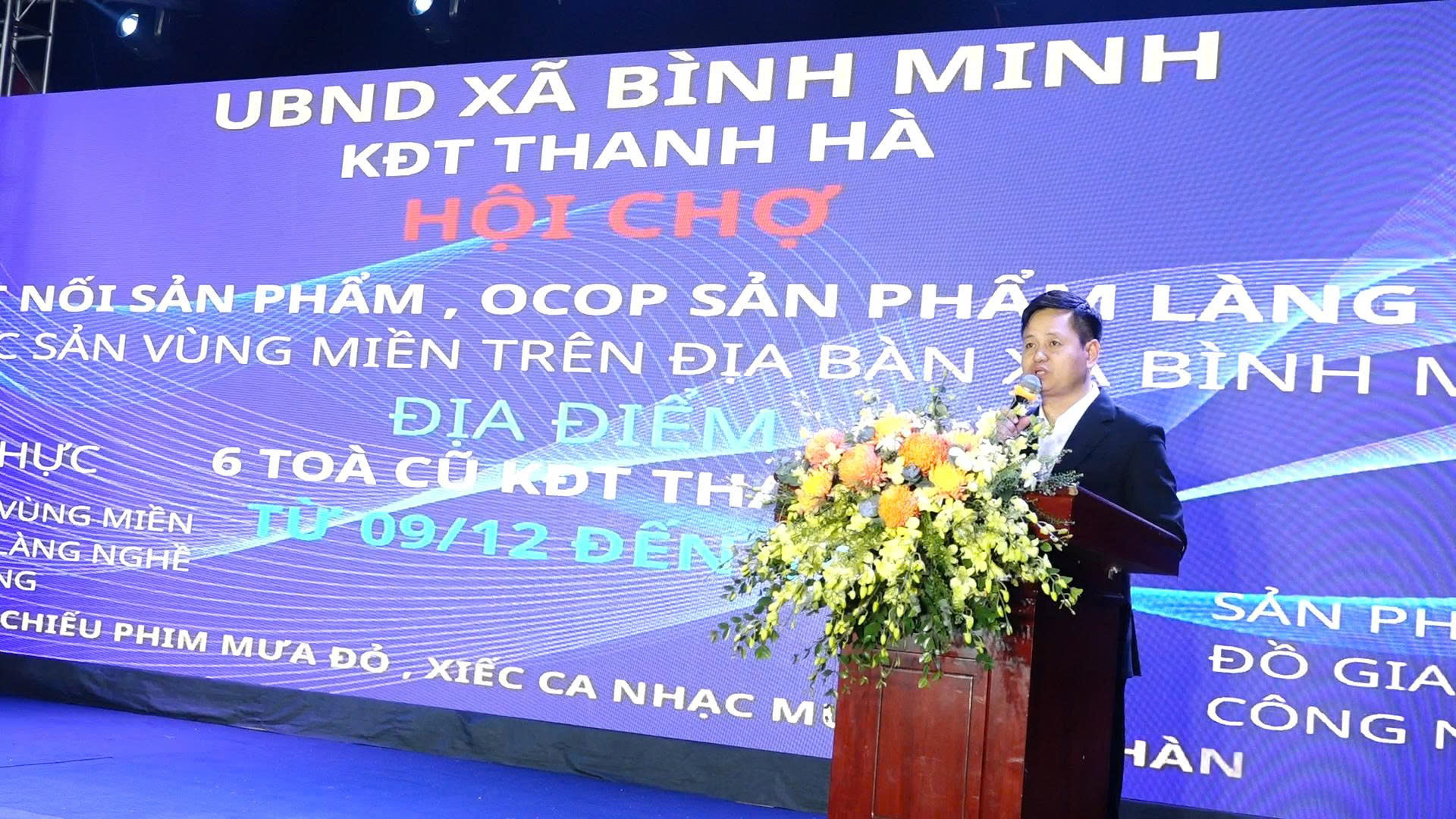 Phát biểu khai mạc hội chợ Phó Bí thư, Chủ tịch UBND xã Bình Minh Nguyễn Đăng Việt nhấn mạnh: Thực hiện Chương trình số 05 ngày 18/5/2025 của UBND thành phố Hà Nội về Chương trình Xúc tiến đầu tư, thương mại, du lịch thành phố Hà Nội năm 2025; Để đẩy mạnh kết nối, giao lưu về sản xuất và thương mại sản phẩm OCOP, sản phẩm làng nghề truyền thống của xã Bình Minh với các địa phương trong nước; nhằm thúc đẩy liên kết chuỗi giá trị từ sản xuất đến tiêu thụ sản phẩm OCOP, góp phần nâng cao năng lực cạnh tranh sản phẩm OCOP trên địa bàn xã Bình Minh. Chương trình "Mỗi xã một sản phẩm – OCOP" đã phát huy hiệu quả rõ rệt, nâng cao giá trị sản phẩm nông thôn và thúc đẩy phát triển kinh tế địa phương bền vững. Khuyến khích các chủ thể tham gia trưng bày, quảng bá, kết nối giao thương sản phẩm OCOP nhằm phát huy thương hiệu địa phương. Triển khai 18 sản phẩm OCOP trên địa bàn xã, tập trung chủ yếu vào nhóm thực phẩm chế biến( trong đó: Sản phẩm OCOP 4 sao: 14 sản phẩm, sản phẩm OCOP 3 sao: 4 sản phẩm)