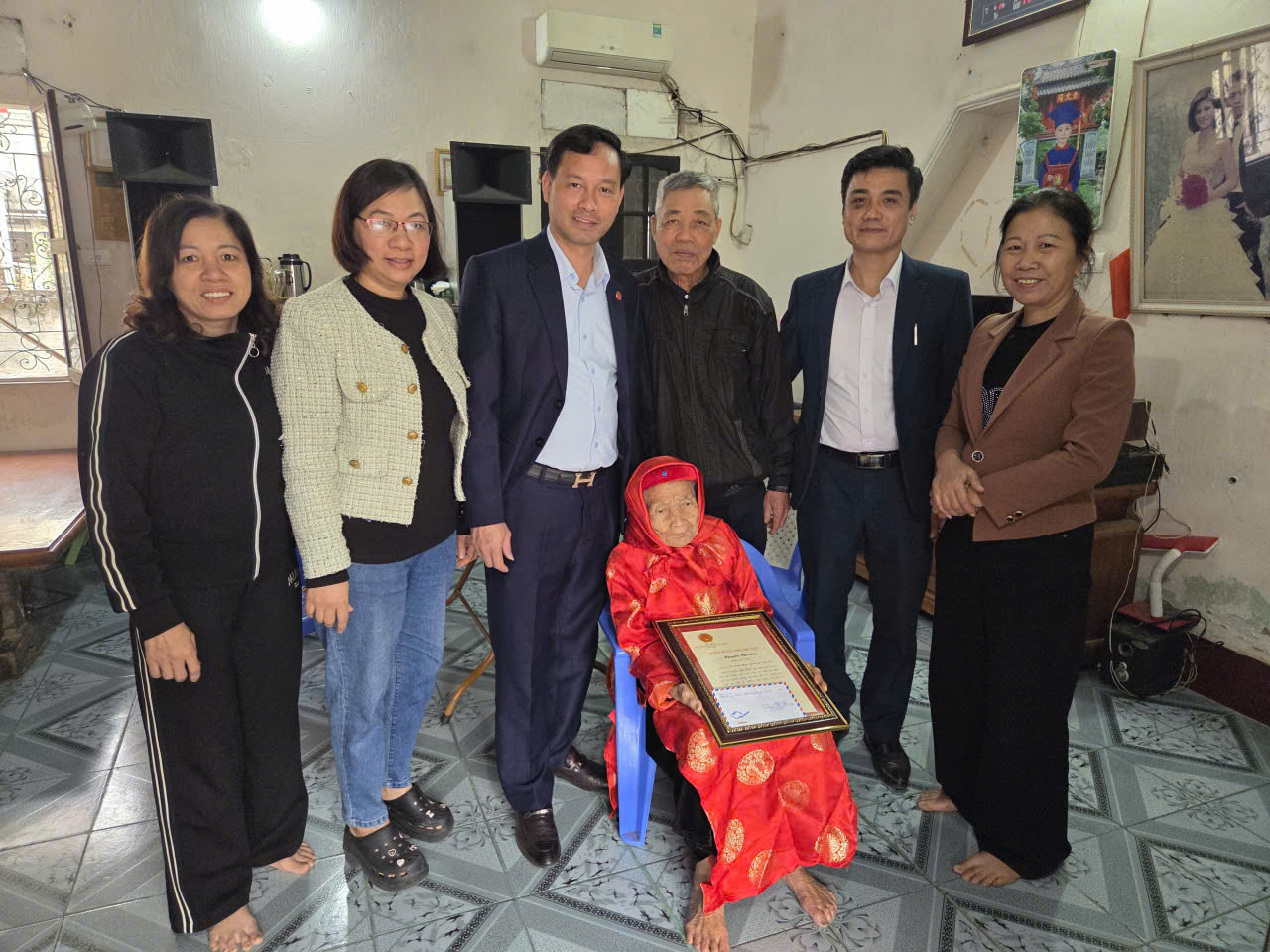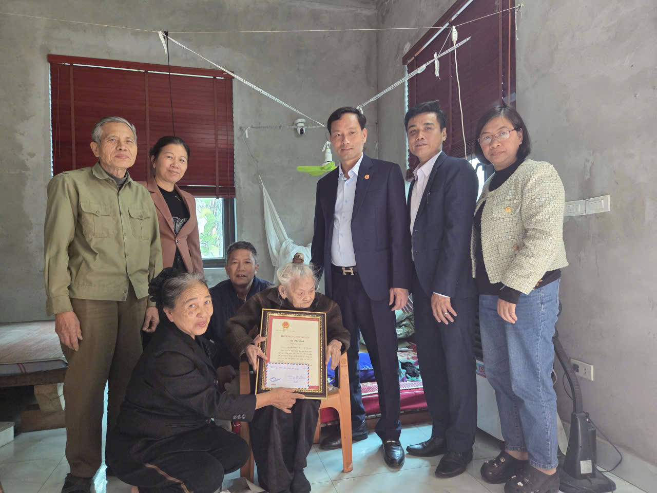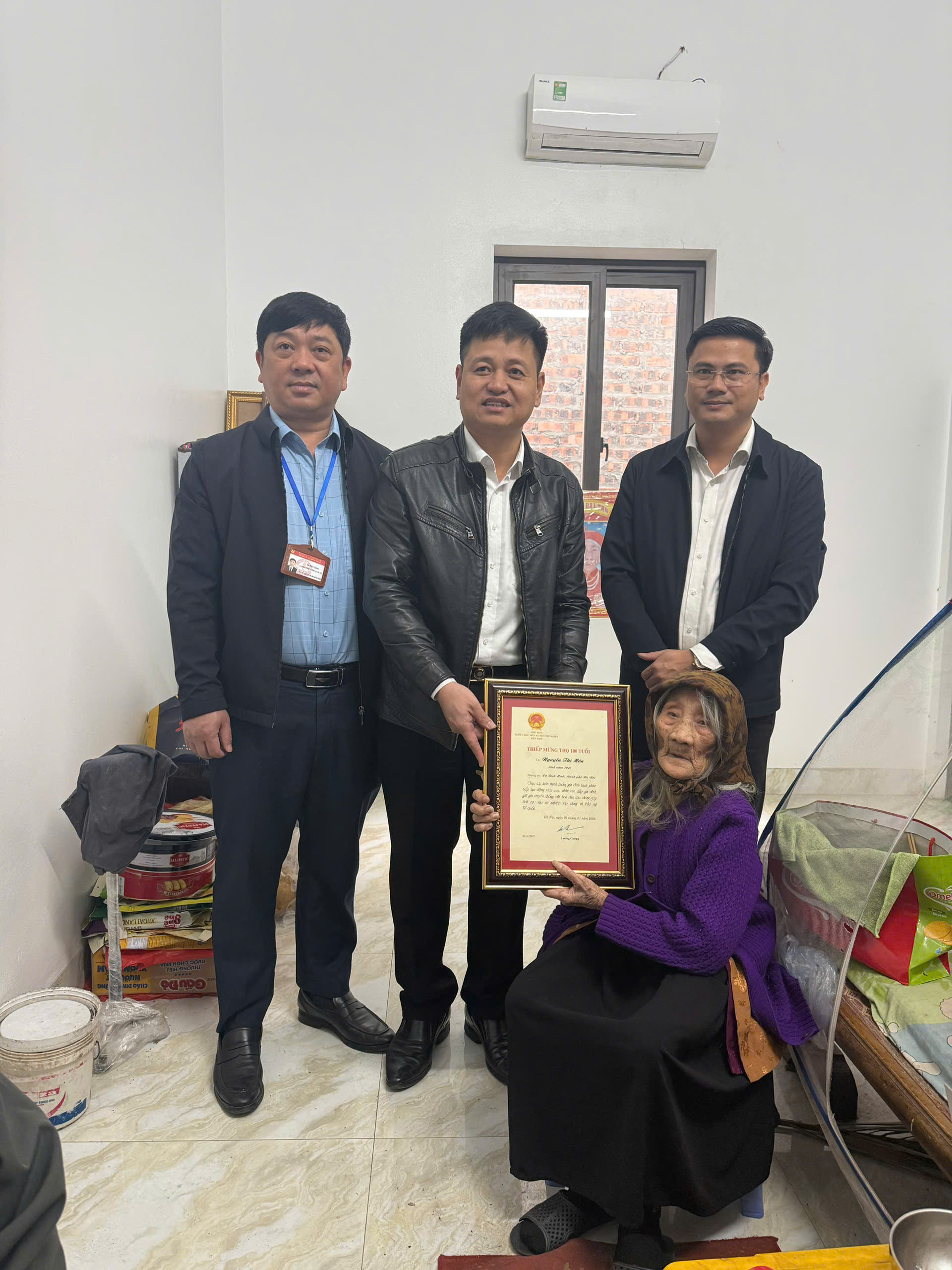 Đoàn 3 do Phó Bí thư Đảng uỷ, Chủ tịch UBND xã Nguyễn Đăng Việt làm trưởng đoàn đã đến thăm và tặng quà bà Nguyễn Thị Kẹo, người cao tuổi tròn 100 tuổi ở thôn Trung; bà Nguyễn Thị Môn, người cao tuổi tròn 100 tuổi ở thôn Trung. Cùng đi có đồng chí Lê Văn Cảnh, UVBTV Đảng uỷ, Chủ nhiệm UBKT; đồng chí Nguyễn Văn Biên, Phó Trưởng phòng Văn hoá xã hội