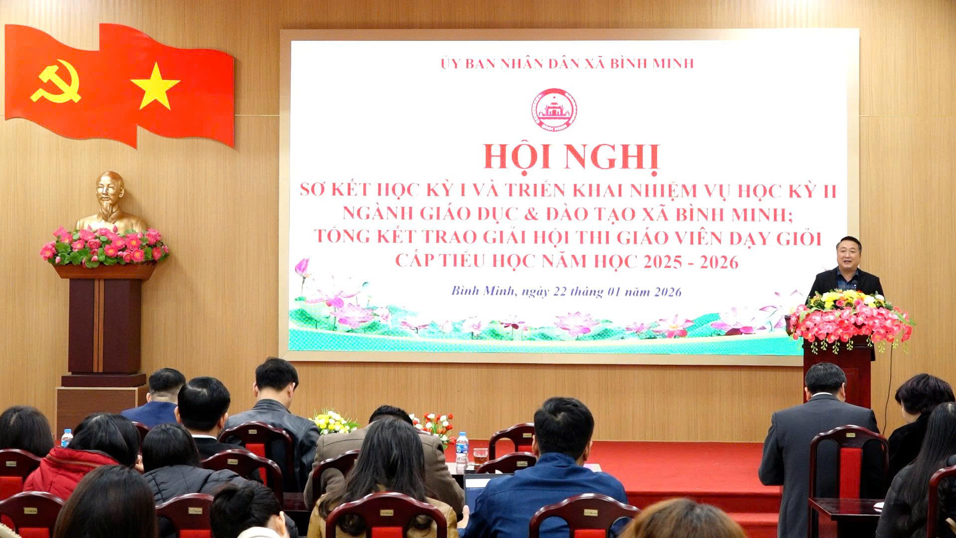 Nhân dịp này, UBND xã Bình Minh đã tổ chức biểu dương, khen thưởng các tập thể và cá nhân có thành tích xuất sắc trong học kỳ I năm học 2025–2026 và Hội thi Giáo viên dạy giỏi cấp xã.