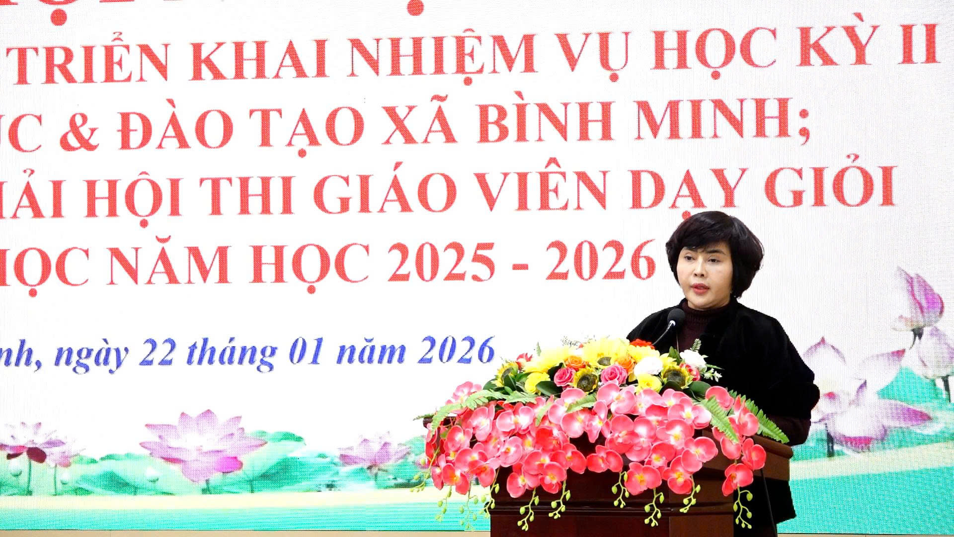 Tiếp đó, đồng chí Nguyễn Thị Anh Đào – Trưởng phòng Văn hóa – Xã hội xã đã báo cáo tổng kết Hội thi Giáo viên dạy giỏi cấp Tiểu học xã Bình Minh, đồng thời triển khai phương hướng, nhiệm vụ trọng tâm học kỳ II. Theo báo cáo, toàn ngành có nhiều giáo viên tiêu biểu, tâm huyết, có sáng kiến kinh nghiệm, phương pháp giảng dạy sáng tạo, góp phần quan trọng nâng cao chất lượng giáo dục và xây dựng hình ảnh người thầy trong giai đoạn mới.