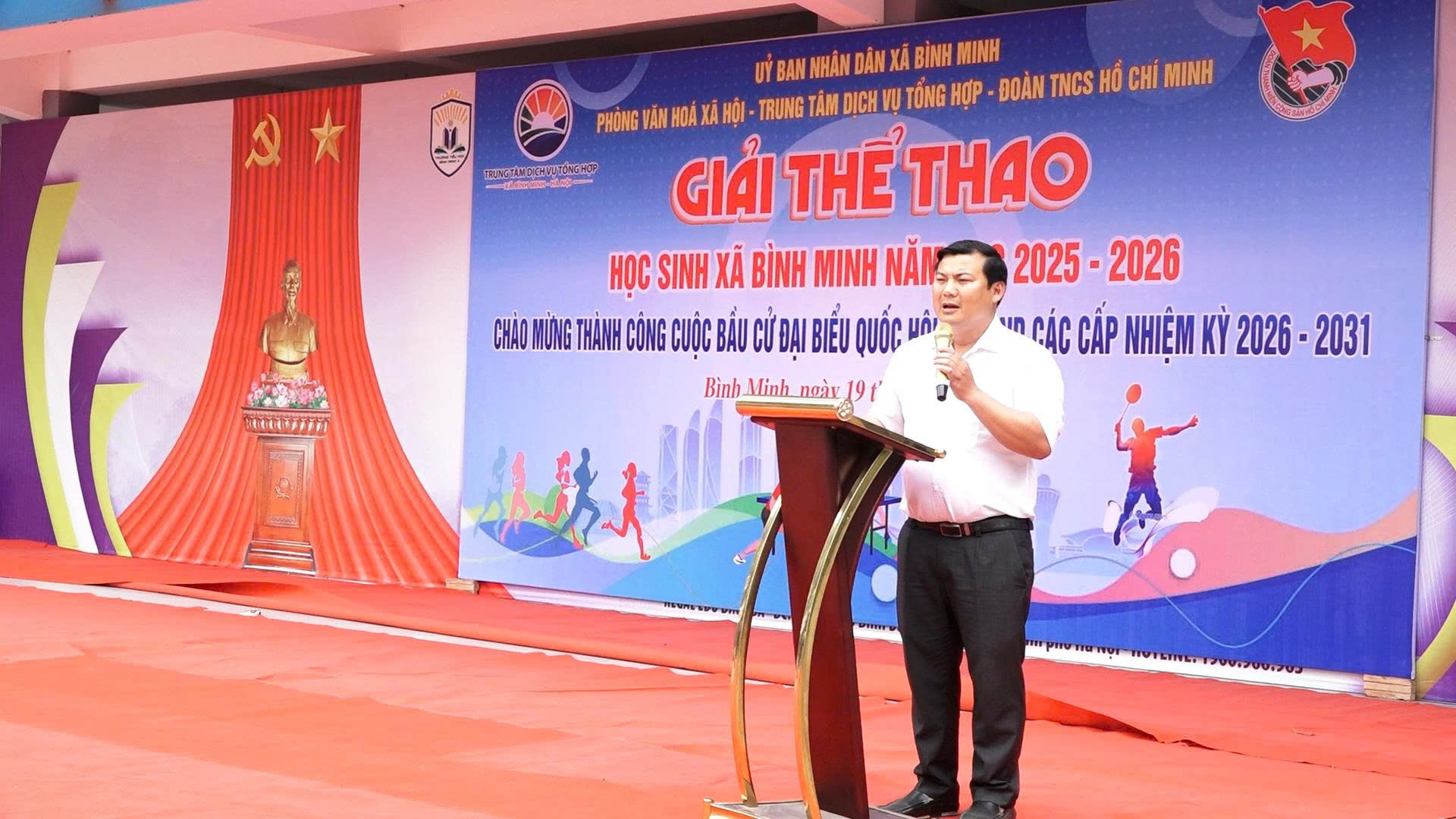 Ngày 19-3, tại sân trường tiểu học Bình Minh A, UBND xã Bình Minh tổ chức Giải thể thao học sinh phổ thông xã Bình Minh năm học 2025-2026 chào mừng thành công cuộc bầu cử đại biểu quốc hội khoá XVI và HĐND các cấp nhiệm kỳ 2026- 2031.
