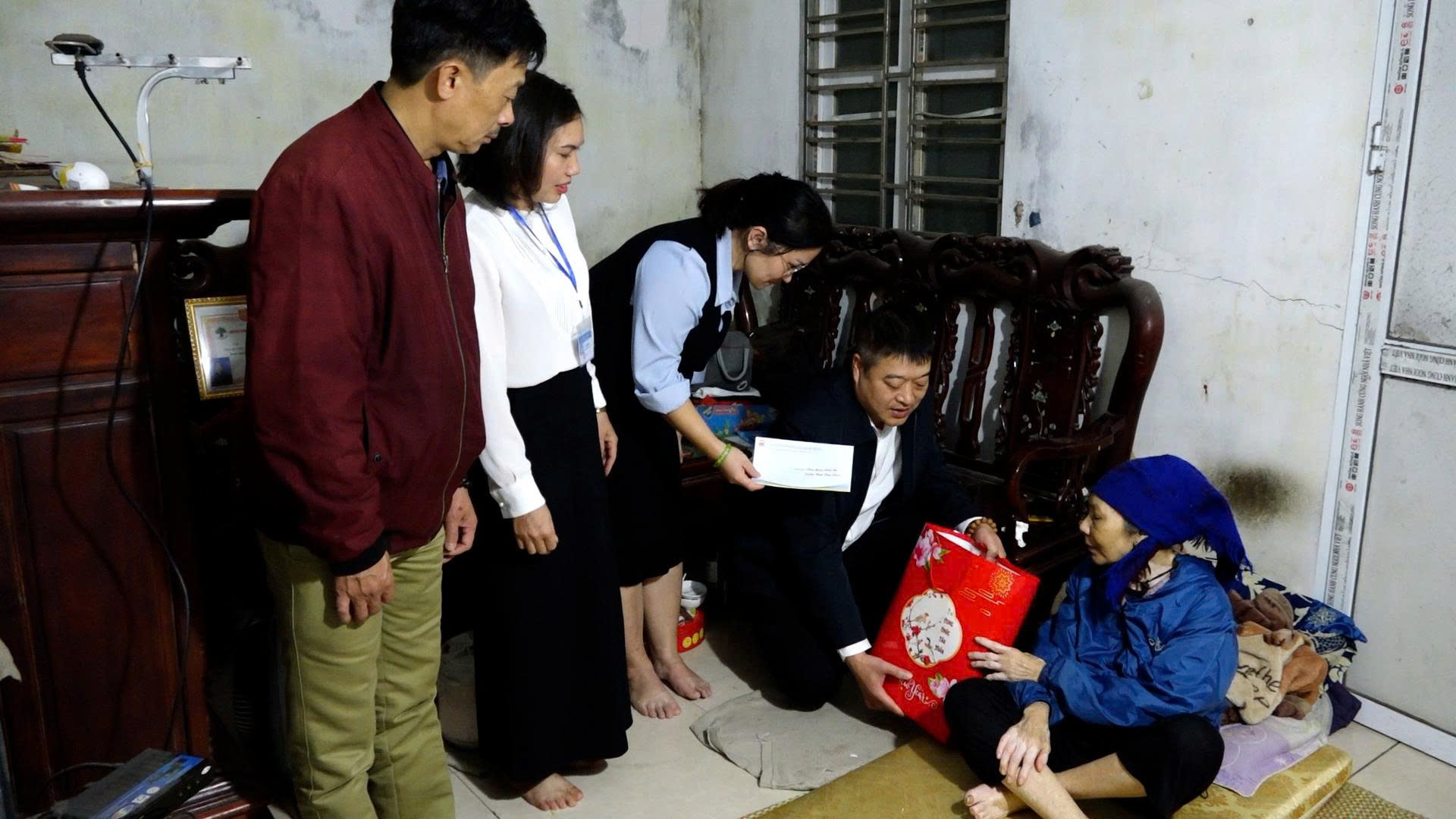 UVBTV Đảng uỷ, Phó Chủ tịch HĐND xã Nguyễn Trung Đài tặng quà bà Lê Thị Thái, vợ liệt sỹ ở thôn Khúc Thuỷ