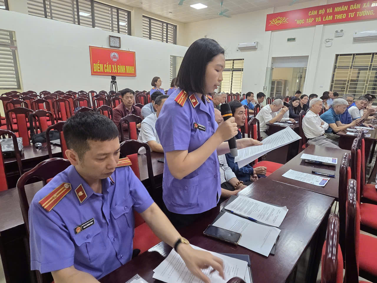 Sáng ngày 27/3/2026, Viện KSND khu vực 6 - thành phố Hà Nội phối hợp với UBND xã Bình Minh trực tiếp tổ chức Hội nghị tuyên truyền pháp luật về Nghị quyết số 205/2025/QH15 của Quốc Hội . Dự và chỉ đạo hội nghị có đồng chí Nguyễn Diệp Liên, Phó Trưởng phòng P9 VKSNDTP Hà Nội;đồng chí Lê Đức Ánh, Nguyễn Thị Tuyết Mai, Phó Viện trưởng VKSND khu vực 6, thành phố Hà Nội; đồng chí Nguyễn Đăng Việt, Phó Bí thư, Chủ tịch UBND xã; đồng chí Nguyễn Thị Anh Đào, Đảng uỷ viên, Phó Chủ tịch UBND xã; đại diện lãnh đạo các phòng, ban, ngành, đoàn thể, công an xã; Bí thư chi bộ, Trưởng thôn, tổ trưởng tổ dân phố