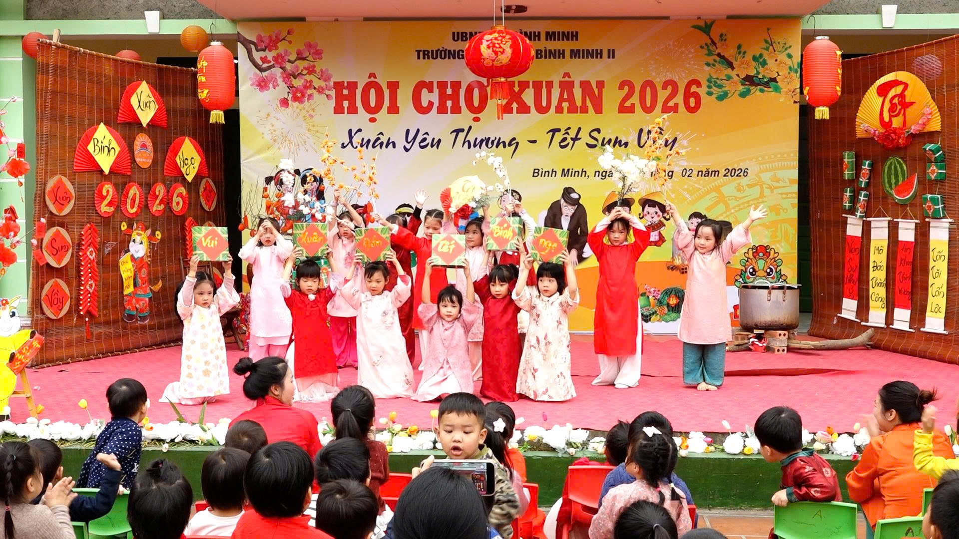 Chiều ngày 3/2, Trường Mầm non Bình Minh II tổ chức Hội chợ Xuân năm 2026 với chủ đề "Xuân yêu thương- Tết sum vầy", thu hút sự tham gia của toàn thể cán bộ, giáo viên, nhân viên nhà trường, Ban đại diện cha mẹ học sinh, đông đảo phụ huynh cùng các em học sinh.
