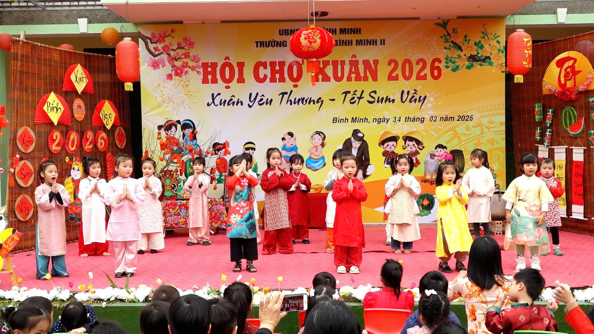 Phát biểu khai mạc cô giáo Đào Thị Bích Hường- Bí thư Chi bộ, Hiệu trưởng trường Mầm non Bình Minh II nhấn mạnh: Hội chợ Xuân được tổ chức trong không khí rộn ràng trước thềm Tết Nguyên đán Bính Ngọ, là hoạt động giáo dục trải nghiệm phù hợp với đặc thù lứa tuổi mầm non, góp phần tạo môi trường học tập thân thiện, gần gũi, lấy trẻ làm trung tâm. Thông qua các tiết mục văn nghệ chào xuân, trò chơi dân gian và không gian "chợ quê" với các gian hàng, trẻ được làm quen với phong tục Tết cổ truyền, cảm nhận sắc xuân, đồng thời rèn luyện kỹ năng giao tiếp, sự mạnh dạn, tự tin khi tham gia các hoạt động tập thể.