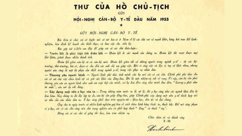 Trong thư, Người nhấn mạnh tinh thần trách nhiệm và y đức của người cán bộ y tế, đồng thời căn dặn sâu sắc: “Lương y phải như từ mẫu” – người thầy thuốc phải có tấm lòng nhân ái như người mẹ hiền.