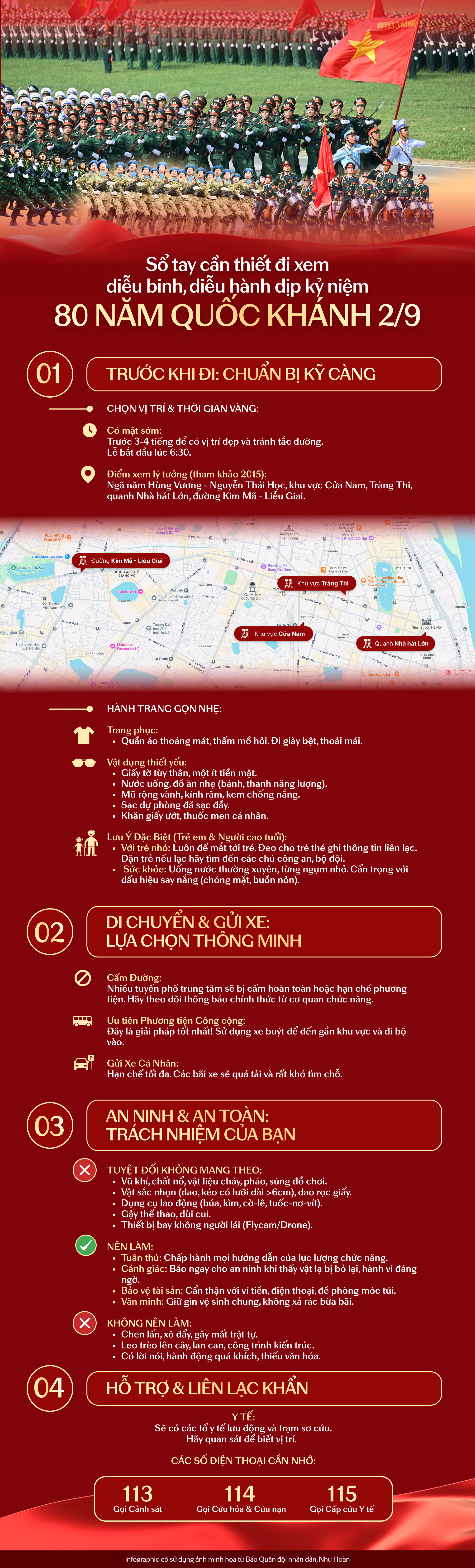 - Các tuyến buýt đi qua khu vực lễ diễu binh: 09A, 22A, E09, 32, BRT.