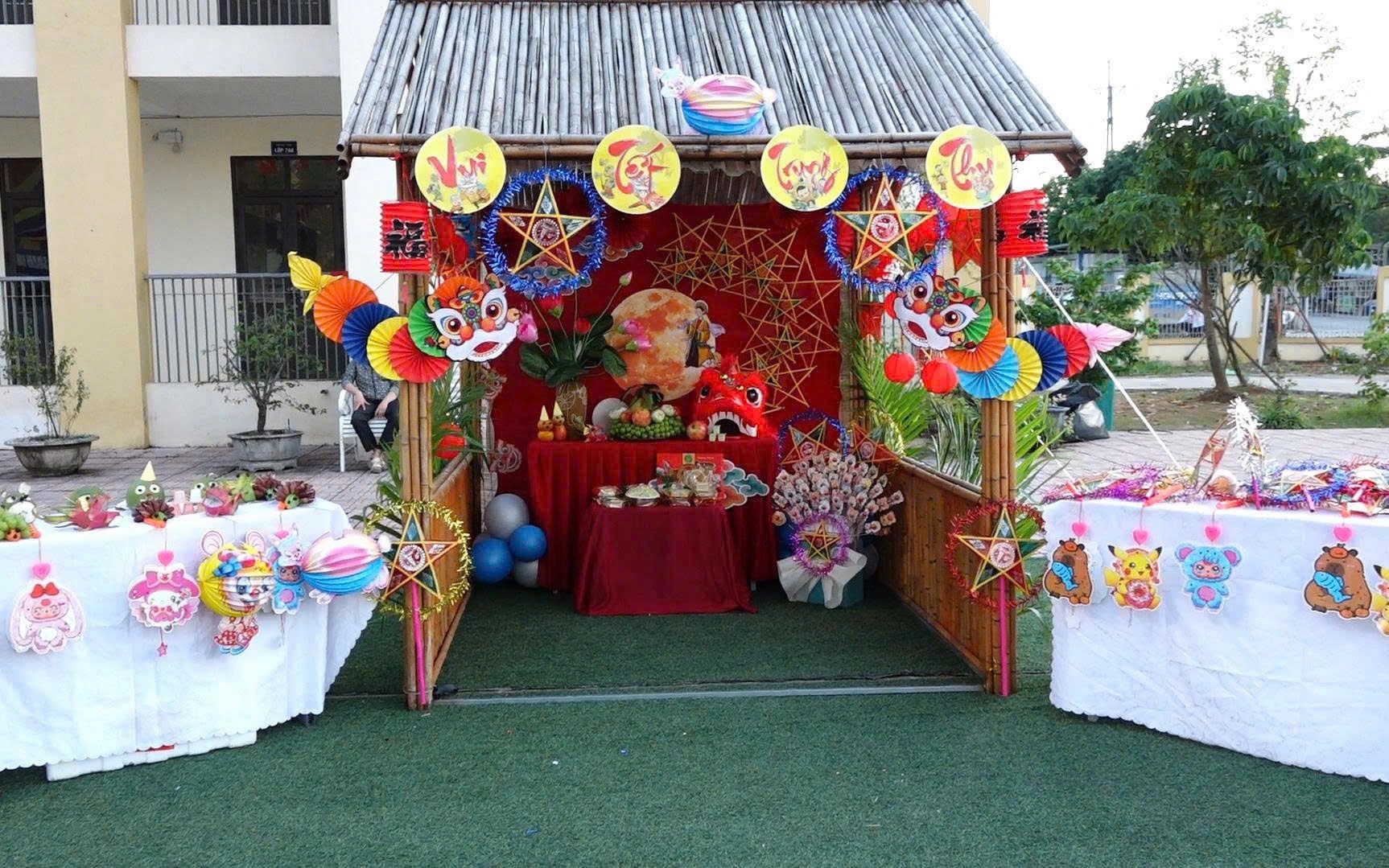 Tất cả được sắp đặt hài hòa, kết hợp ánh sáng, hoa hồng và màu sắc rực rỡ, gửi gắm thông điệp về sự đoàn viên, ấm áp và niềm vui sum vầy trong ngày Tết thiếu nhi. Không chỉ thành công ở mâm cỗ, gian hàng Trung Thu của nhà trường cũng để lại ấn tượng mạnh mẽ với cách bày trí sinh động, sáng tạo, thể hiện tinh thần tập thể, sự khéo léo và tình yêu thương dành cho trẻ thơ. Gian hàng là nơi hội tụ những sắc màu Trung Thu truyền thống xen lẫn nét hiện đại, mang đến cho các em nhỏ trải nghiệm vui tươi, đáng nhớ.